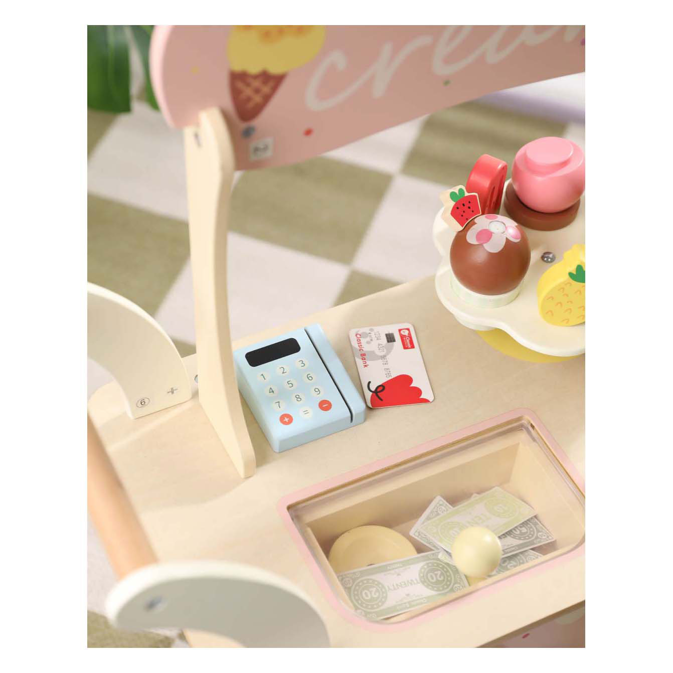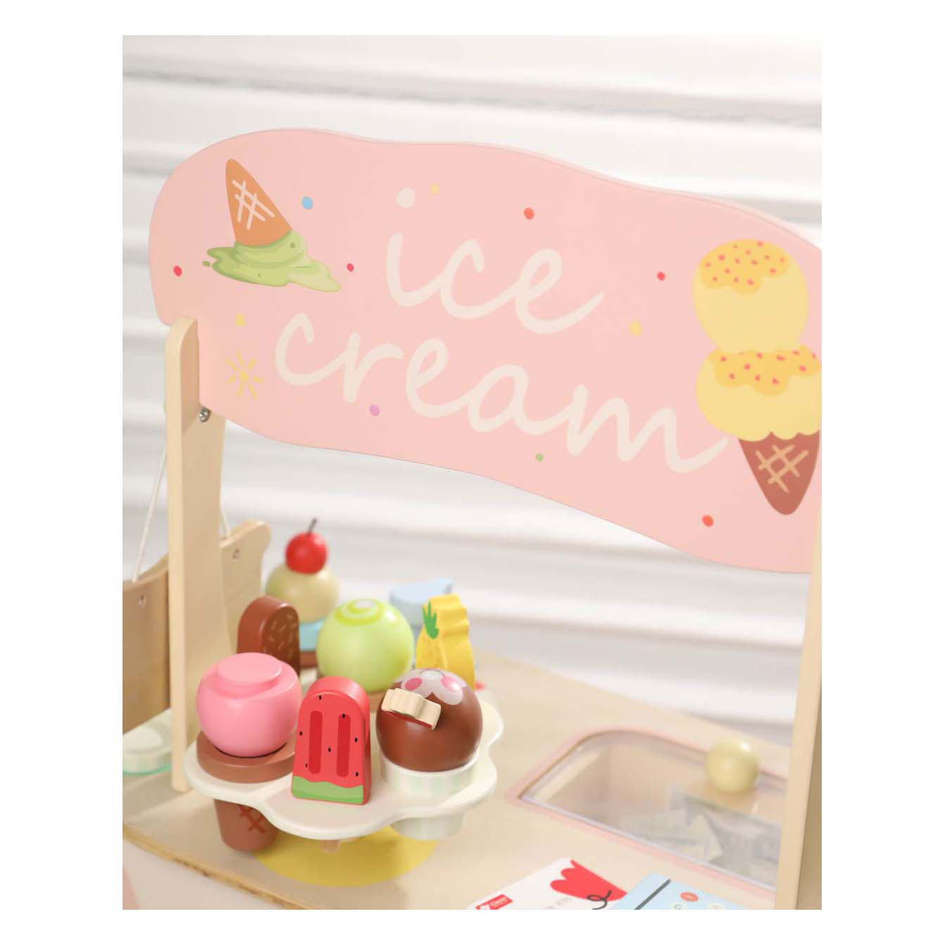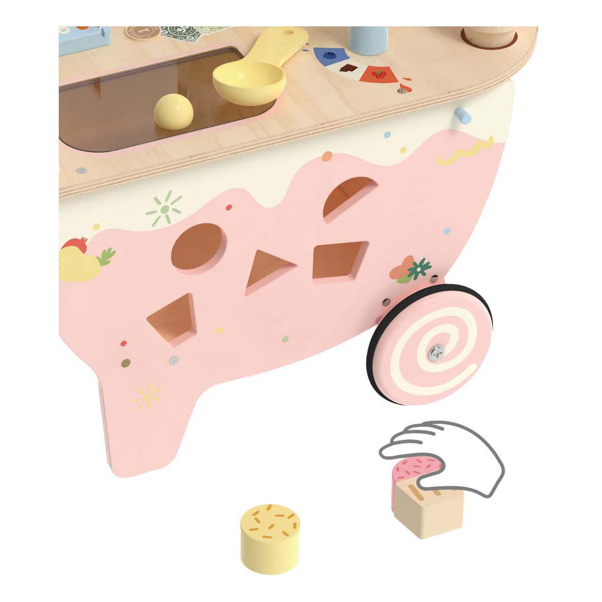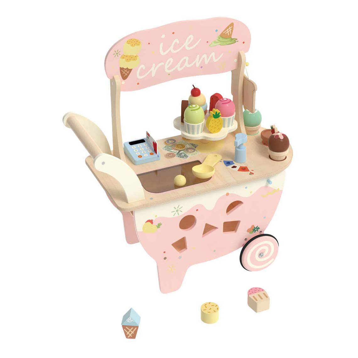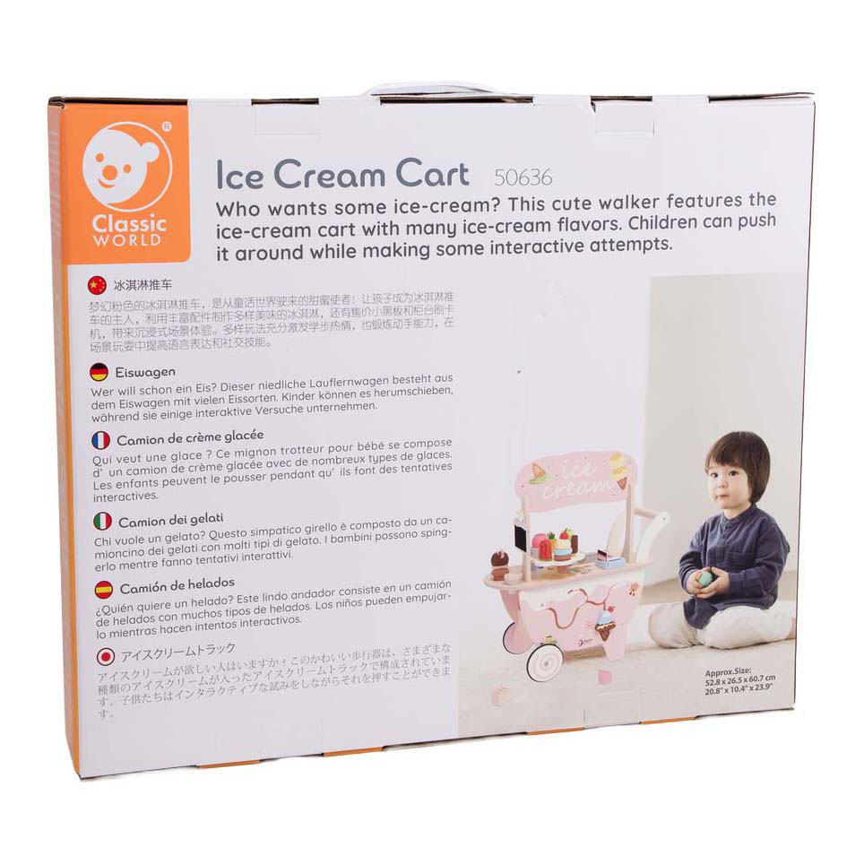 Classic World houten ijskar met verschillende ijsjes en accessoires. Kinderen kunnen rondrijden met de kar en hun eigen ijsjes verkopen tijdens het spelen. De set bestaat uit 40 onderdelen en is gemaakt van hout. Geschikt voor kinderen vanaf 3 jaar oud. Een vrolijke speelset voor rollenspel.