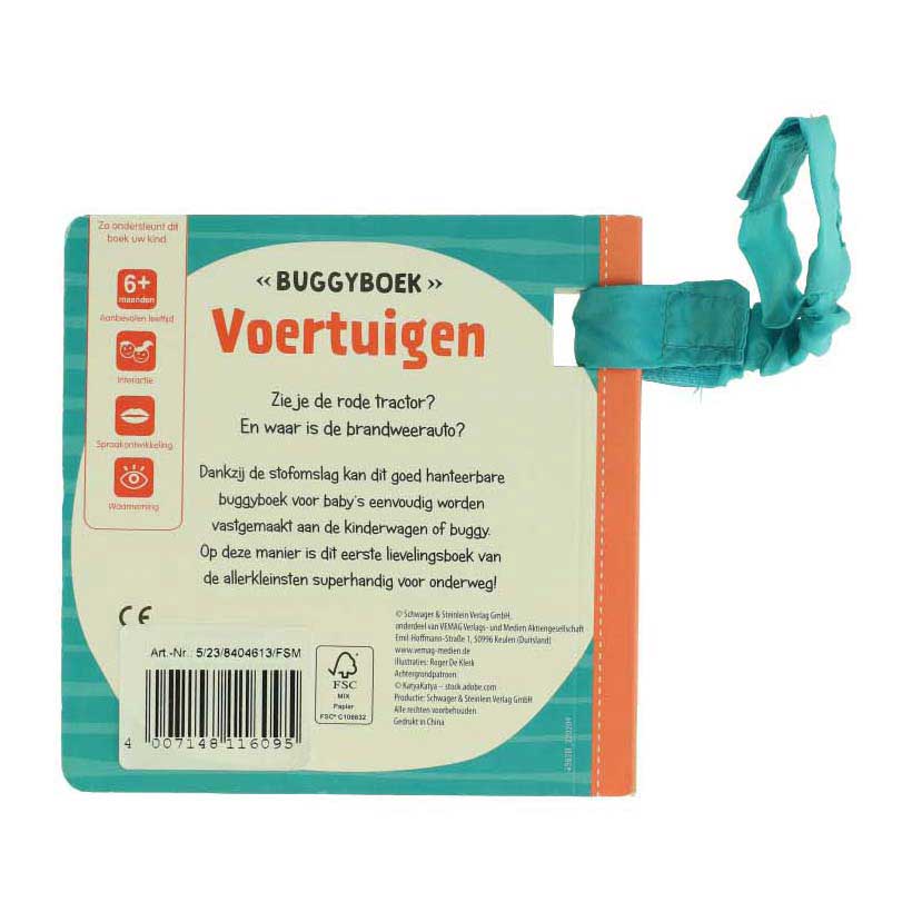 Stevig buggyboekje met voertuigen in heldere kleuren. Stimuleert het kijken en ontdekken. Met handige bevestigingsring. Geschikt voor baby’s vanaf 6 maanden.