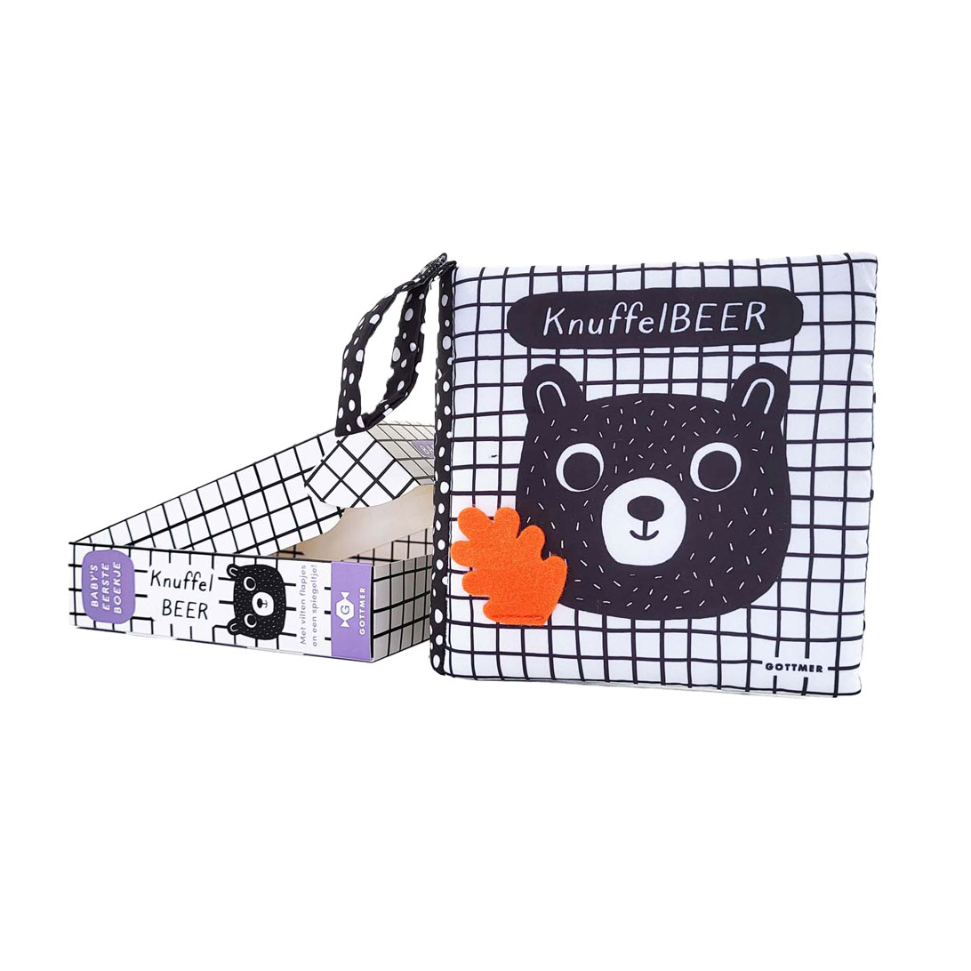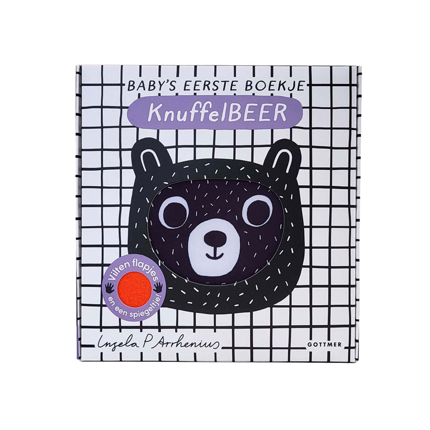 KnuffelBEER' is een superzacht knuffelboekje van stof, speciaal ontworpen voor pasgeboren baby's. Met heerlijk zachte vilten flapjes, knisperende pagina's, een handige lus om aan de buggy of box te bevestigen én een verrassend spiegeltje aan het eind. Het stoffen babyboekje is verpakt in een stijlvolle cadeaudoos - leuk als kraamcadeautje dus!