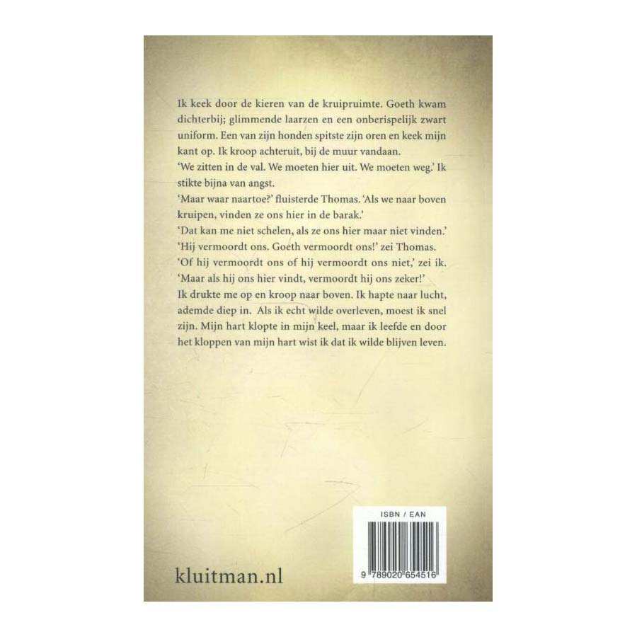 Geschikt voor zowel jongere als volwassen lezers Voor liefhebbers van 'Haar naam was Sarah' en 'De jongen in de gestreepte pyjama' De jongen die tien concentratiekampen overleefde vertelt het waargebeurde verhaal van Yanek, een Joods jongetje tijdens de Tweede Wereldoorlog in Polen. Als de nazi's de jacht op de joden openen in het land, verandert zijn vertrouwde leventje in een nachtmerrie die helaas werkelijkheid is . Hij wordt van het ene concentratiekamp in het andere geplaatst, uitgehongerd, gemarteld en uitgebuit en kijkt de dood keer op keer in de ogen. Het is een wonder hoe Yanek, of volgens de tatoeage op zijn arm PRISONER B-3087, de Tweede Wereldoorlog uiteindelijk overleeft. Maar waar je je als lezer misschien nog wel het meest over verbaast is de kracht van een jongen om te overleven. Hoe lukt het Yanek om zijn hoop niet te verliezen en vooral, om niet te vergeten wie hij werkelijk is?