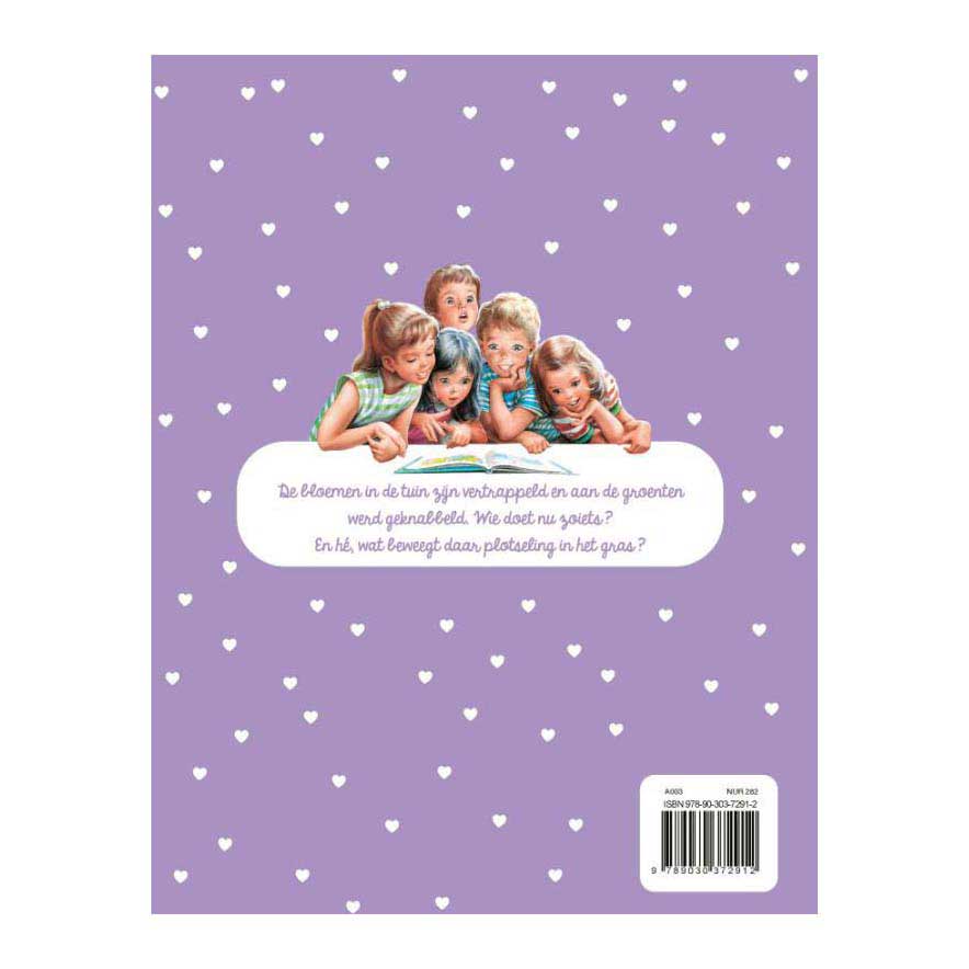 De bloemen in de tuin zijn vertrappeld en aan de groenten werd geknabbeld. Wie doet nu zoiets? En hé, wat beweegt daar plotseling in het gras?