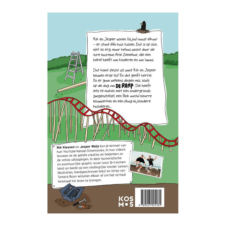 Rik Kleeven en Jesper Weijs ken je van hun YouTubekanaal Glowmovies. In hun video’s bouwen ze de gekste creaties en bedenken ze de vetste uitdagingen. In hun kinderboek ‘Rik en Jesper maken er een zooitje van’ bouwen ze erop los en dat leidt tot De Ramp…
