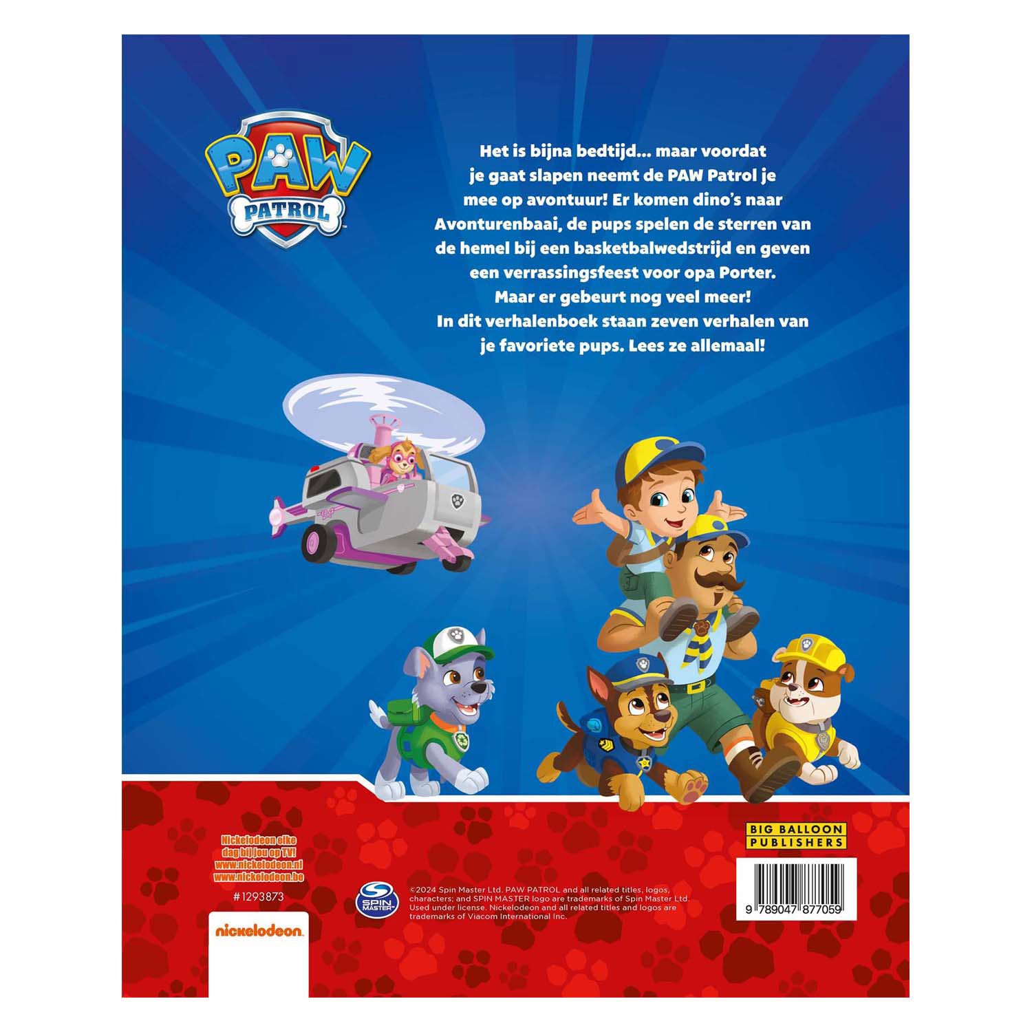 Het is bijna bedtijd... maar voordat je gaat slapen nog één verhaaltje van PAW Patrol lezen uit het voorleesboek 'Verhaaltjes van PAW Patrol voor het slapengaan'! Er komen dino's naar Avonturenbaai, de pups spelen de sterren van de hemel bij een basketbalwedstrijd en geven een verrassingsfeest voor opa Porter en nog veel meer. In dit verhalenboek staan zeven verhalen van je favoriete PAW Patrol-pups.