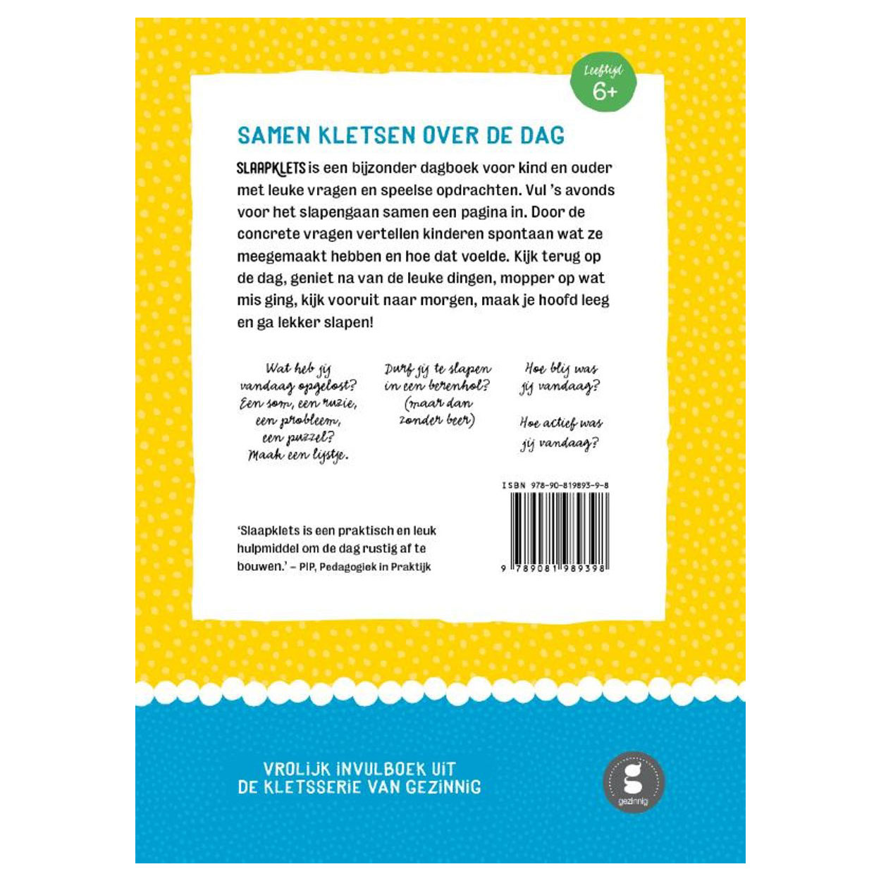 Slaapklets! is een dag- en nachtboek voor kleine en grote mensen. Een boek met vragen en opdrachtjes. Vul voor het slapengaan een pagina in. Schrijf, kies, kruis aan, teken, ontspan, lach, lees. En klets!