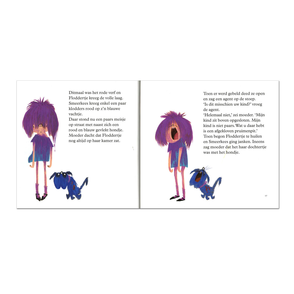 Floddertje in bad, Floddertje bij de kapper, Floddertje in de keuken, Floddertje aan de schoonmaak, Floddertje op bezoek... wat Floddertje en haar hond Smeerkees ook ondernemen, het wordt een heerlijke puinhoop! Toch wordt Floddertje aan het eind van haar avonturen beloond met een ere-lint van de burgemeester. Hardcover. Vanaf ca. 3 jaar. Inhoud: 96 pagina's. Auteur: Annie M.G. Schmidt. Geïllustreerd door Fiep Westendorp.
