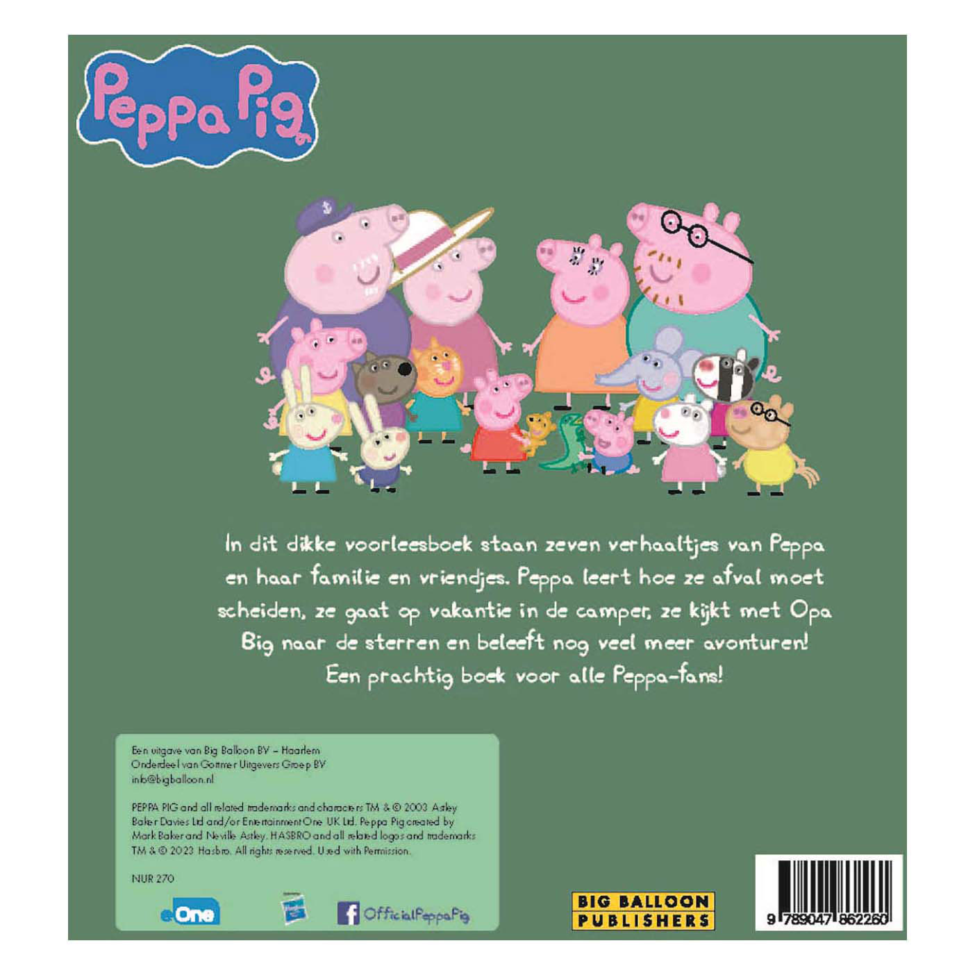 Peppa's voorleesboek' is een superdik voorleesboek en een ideale manier om kennis te maken met Peppa en haar vriendjes. De avontuurlijke verhaaltjes en kleurrijke illustraties in 'Peppa's voorleesboek' zijn heel herkenbaar voor peuters en kleuters. De zeven afzonderlijke Peppa Pig-verhaaltjes zijn heel geschikt om voor te lezen bij het naar bed brengen en je kind op een prettige manier in slaap te krijgen.