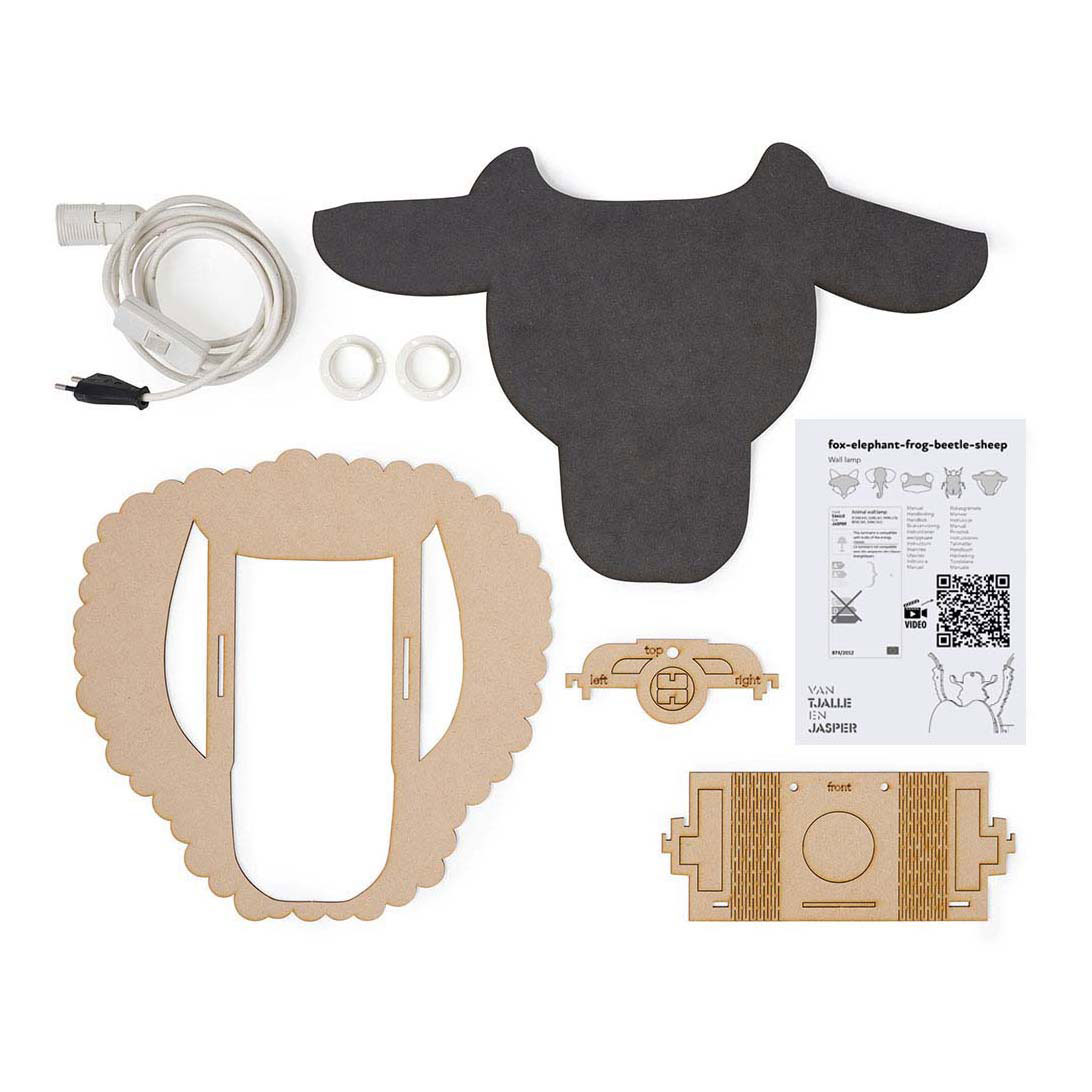 Deze schapen muurlamp wordt geleverd als een handig bouwpakket. In de doos vind je alle benodigde onderdelen en een duidelijke handleiding. De montage duurt slechts een paar minuten. Let op: De lichtbron wordt niet meegeleverd. Voor het beste effect raden wij een LED-lichtbron aan.