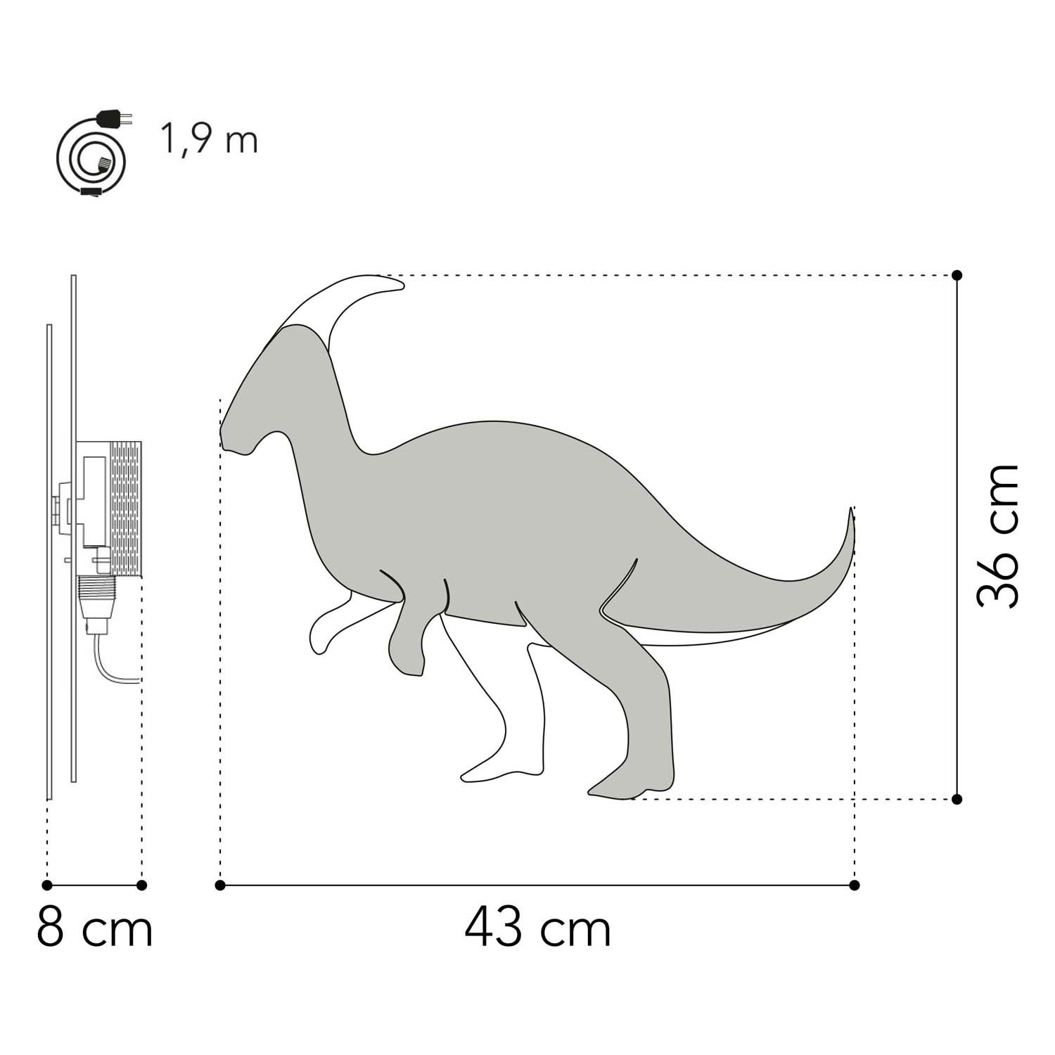 Dino wandlamp Parasaurolophus - Grijs/Naturel