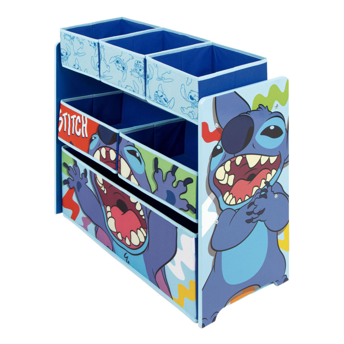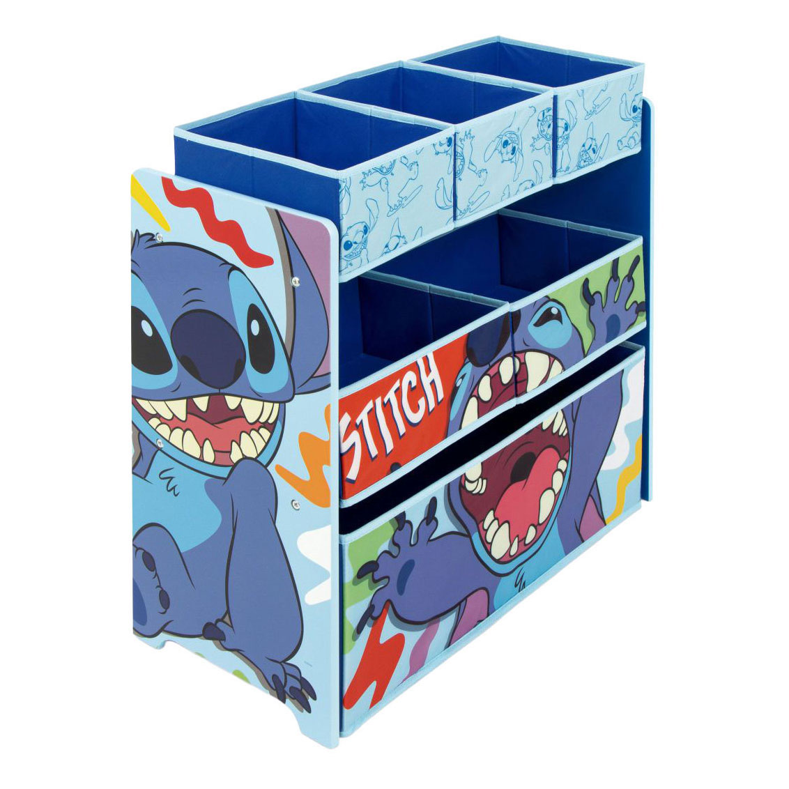 Dankzij de zes stoffen manden die erin zijn verwerkt, kunt u voorwerpen, speelgoed, kostuums, ballen, kleding ... alles netjes en speelklaar opbergen en ordenen.