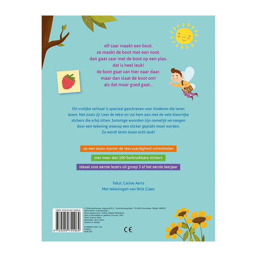 Dit vrolijke verhaal is speciaal geschreven voor kinderen die leren lezen. Net zoals jij! Lees de tekst en vul hem aan met de vele kleurrijke stickers die erbij zitten. Sommige woorden zij namelijk vervangen door een tekening waarop een sticker geplakt moet worden. Zo wordt leren lezen echt leuk!