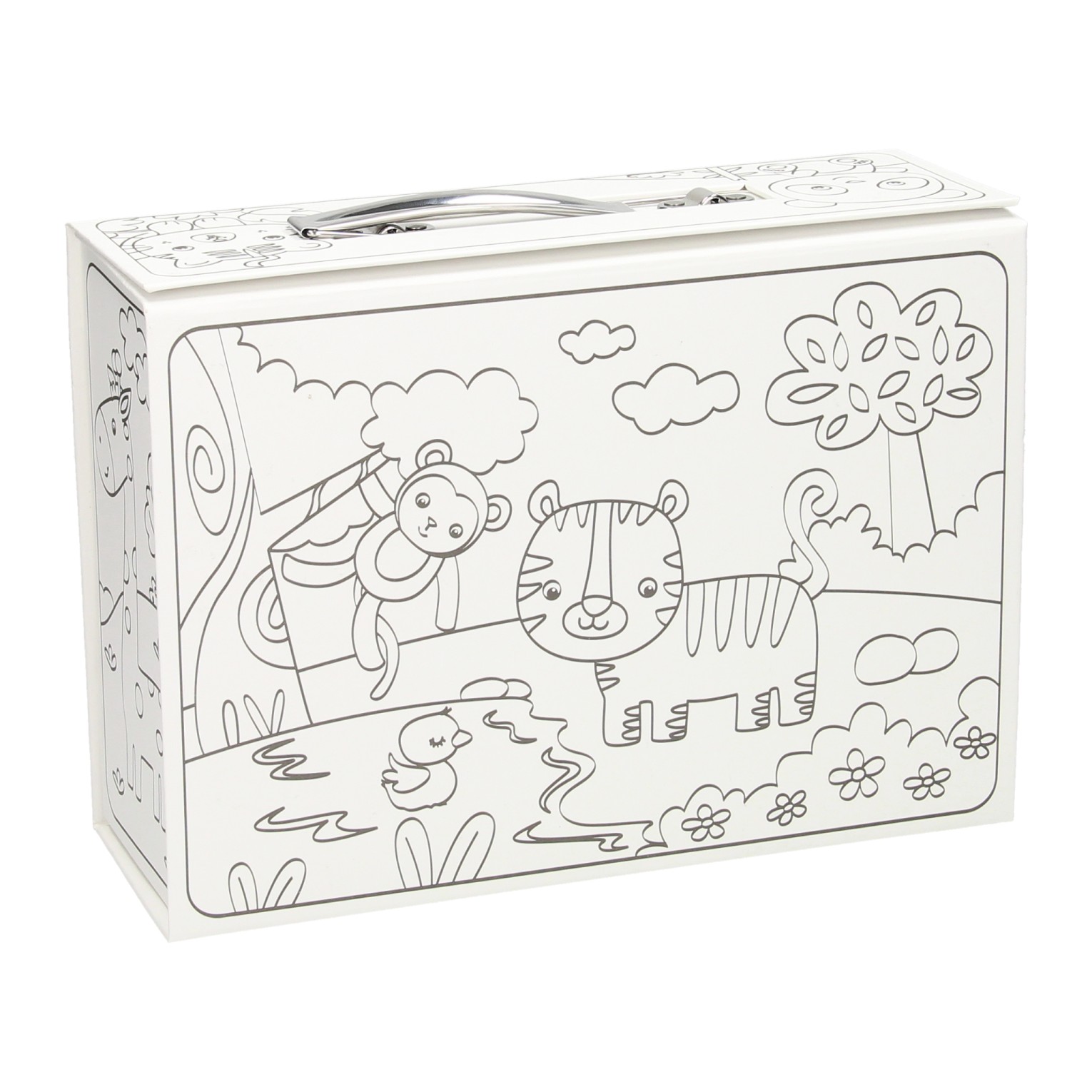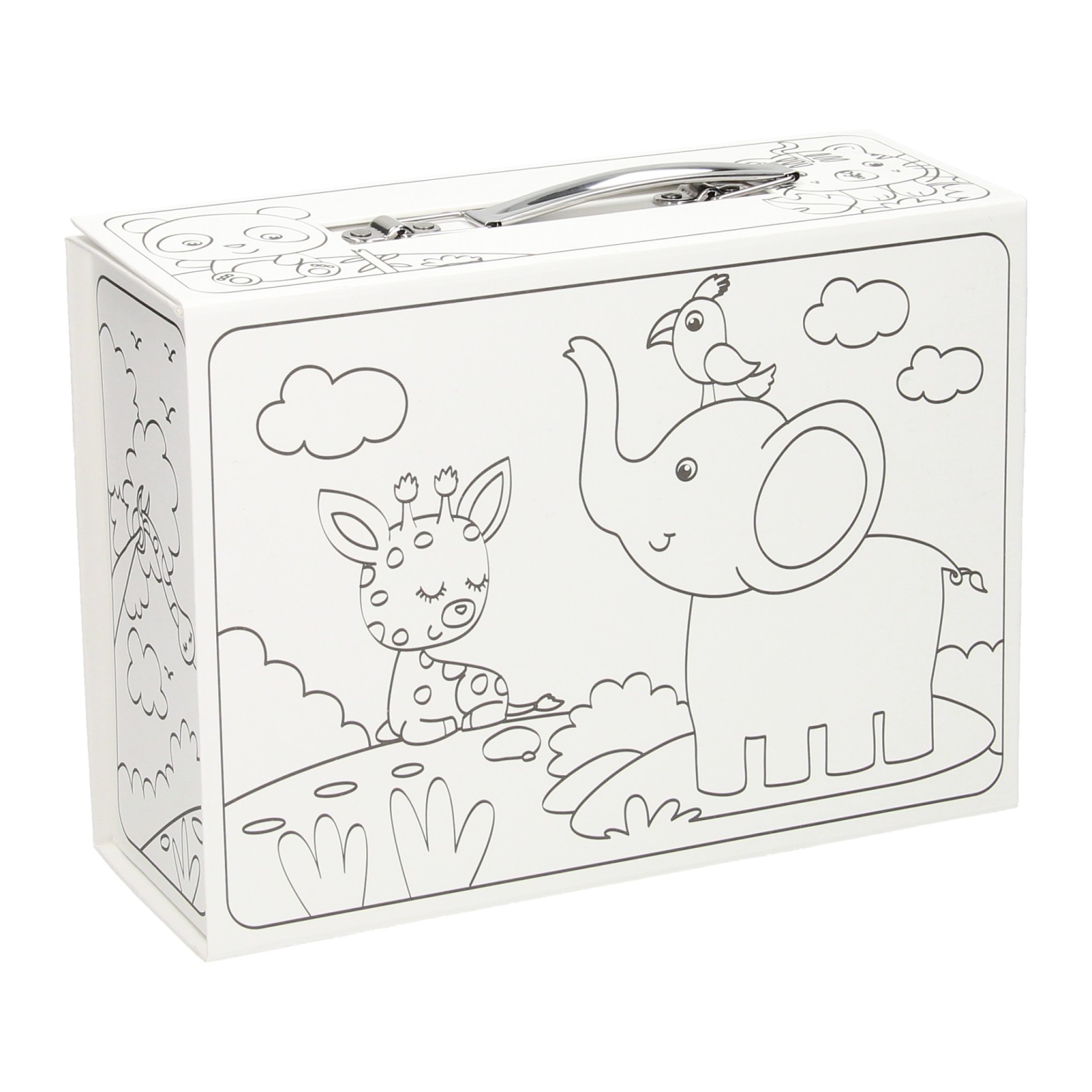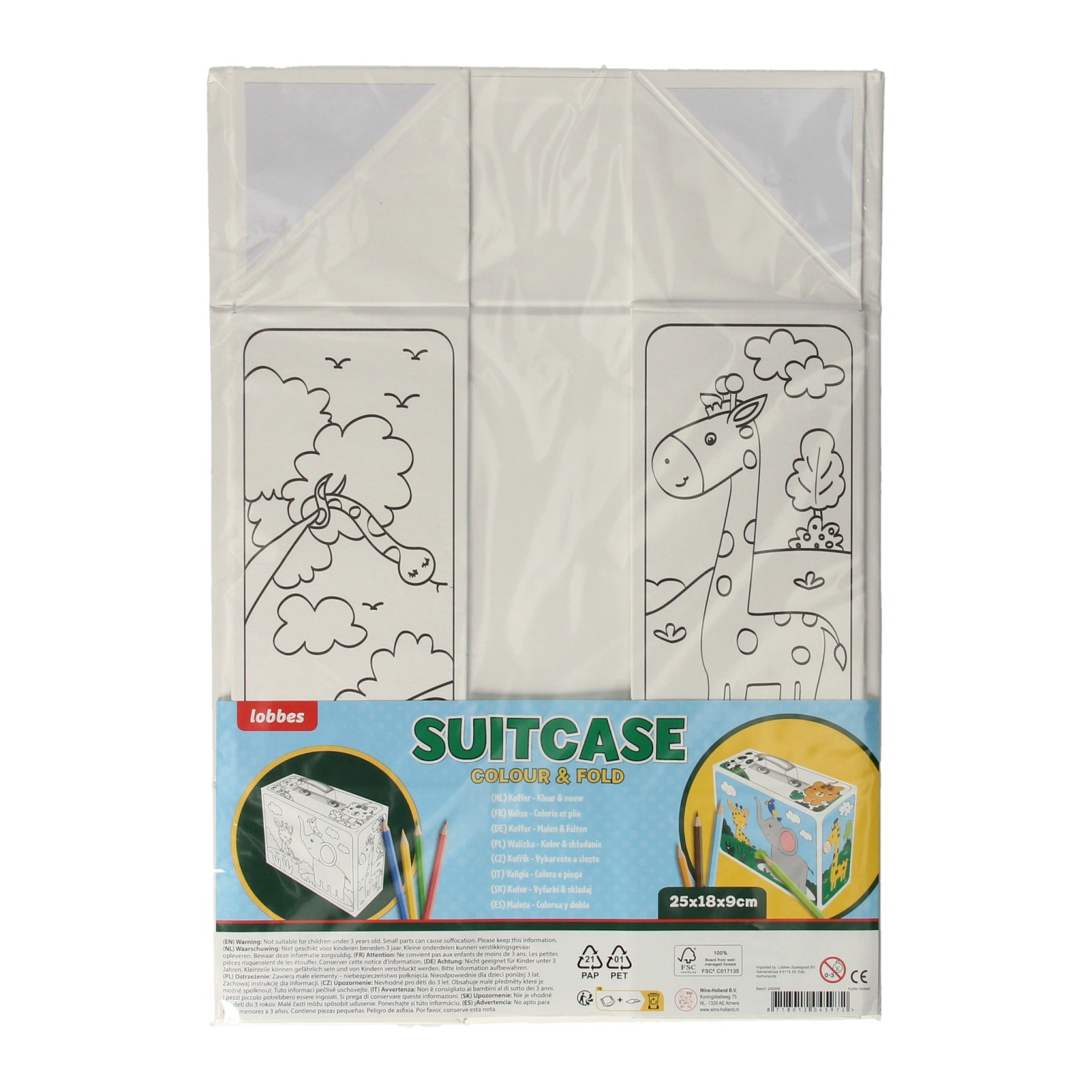 Kleur je eigen koffertje met dierenprint van Lobbes! Afmetingen: 25 x 18 x 9 centimeter.