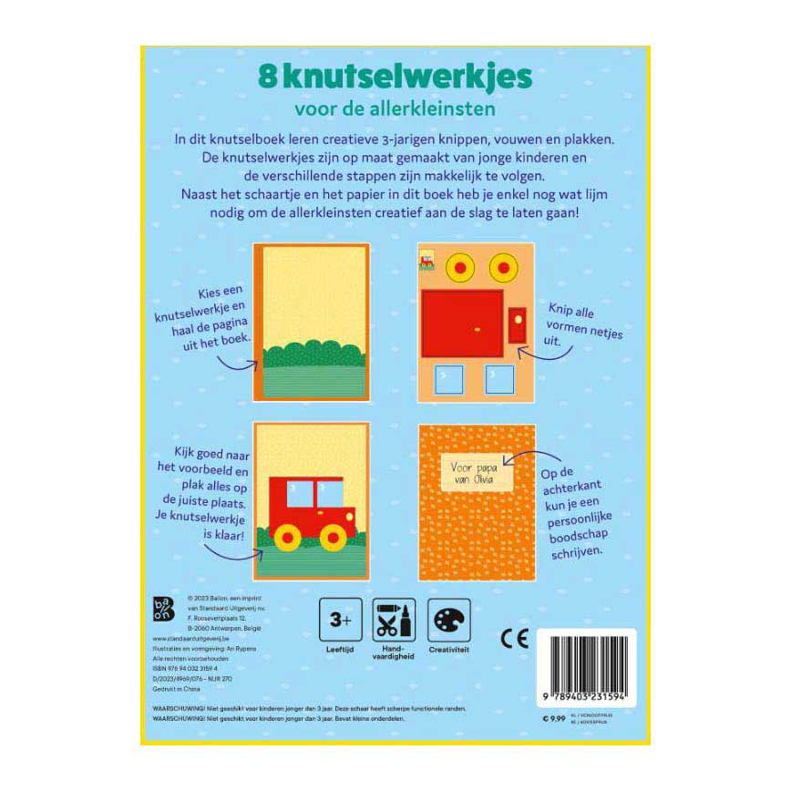 In dit knutselboek leren creatieve 3-jarigen knippen, vouwen en plakken. De knutselwerkjes zijn op maat gemaakt van jonge kinderen en de verschillende stappen zijn makkelijk te volgen.