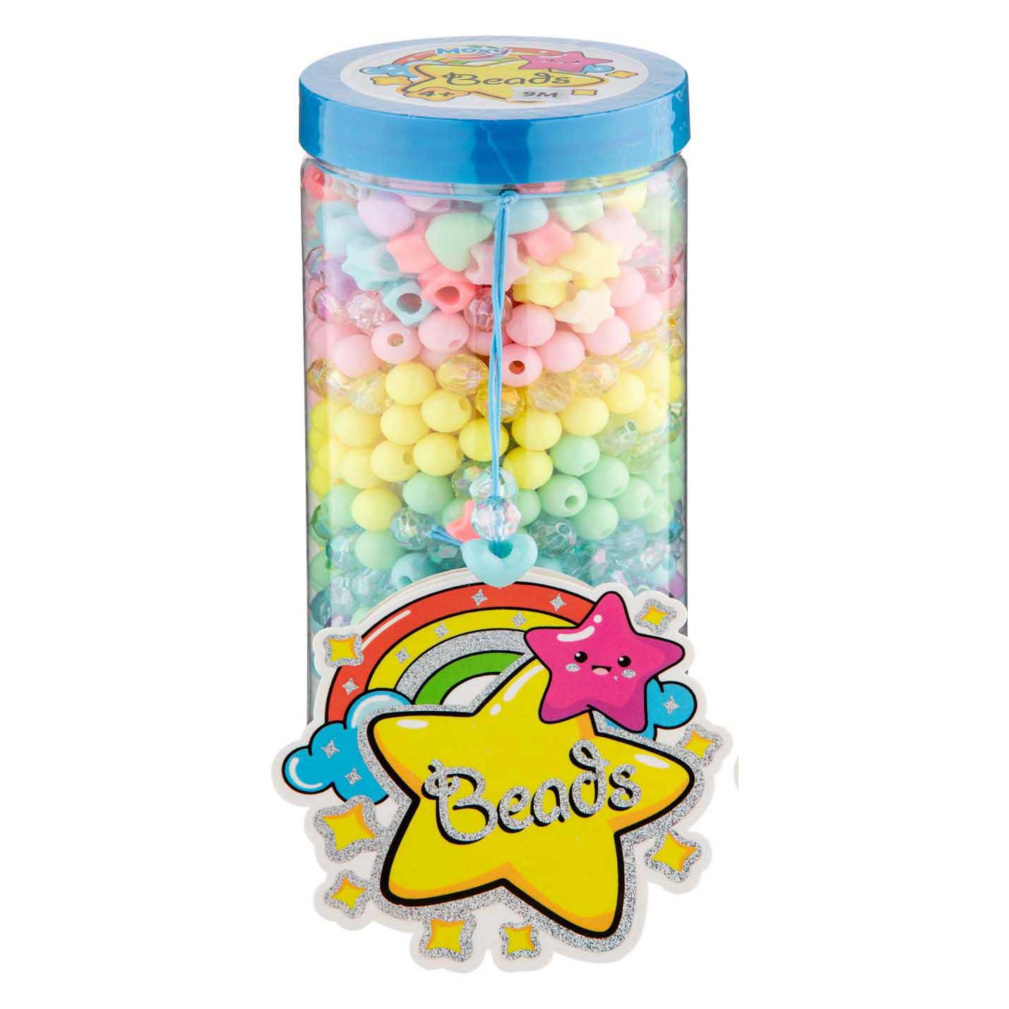 Deze pot zit vol kleurrijke kralen in verschillende vormen, zoals bloemen, sterretjes en ronde kralen. Kinderen kunnen er eenvoudig sieraden en andere creatieve knutsels mee maken. Geschikt vanaf 4 jaar en perfect voor uren knutselplezier.