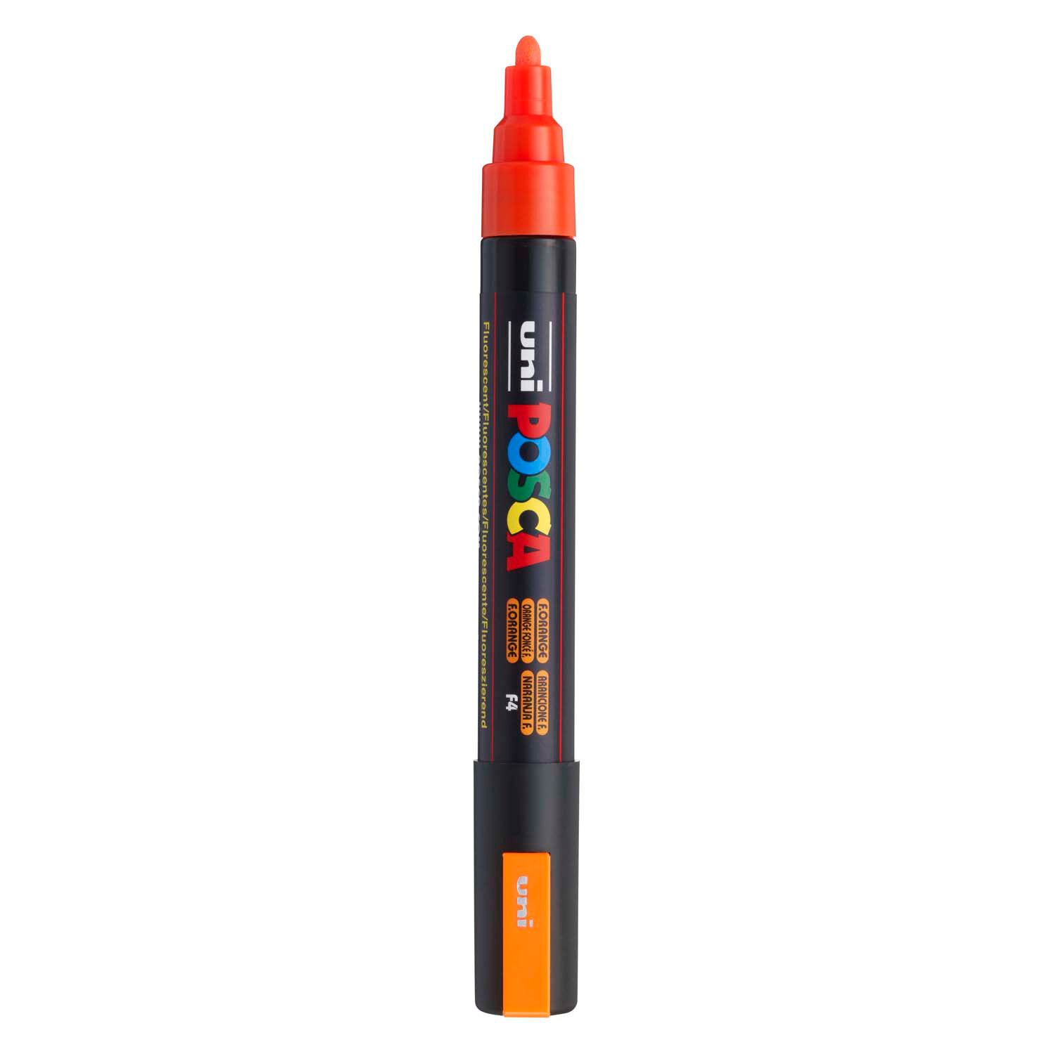 Neon oranje Uni Posca PC5M verfmarker met conische punt van 2,5 mm. De acrylverf hecht goed op karton, hout, textiel, metaal, glas en meer.