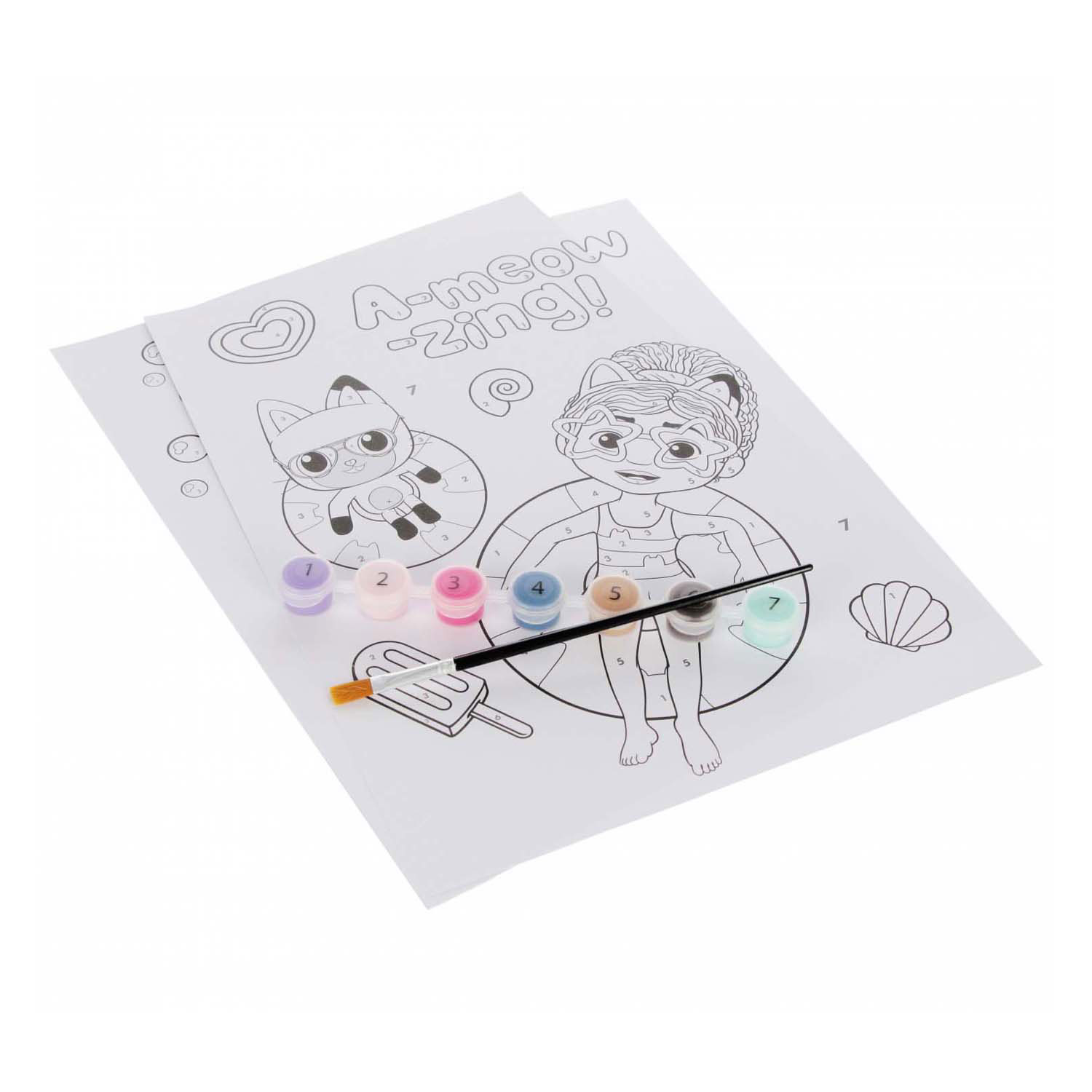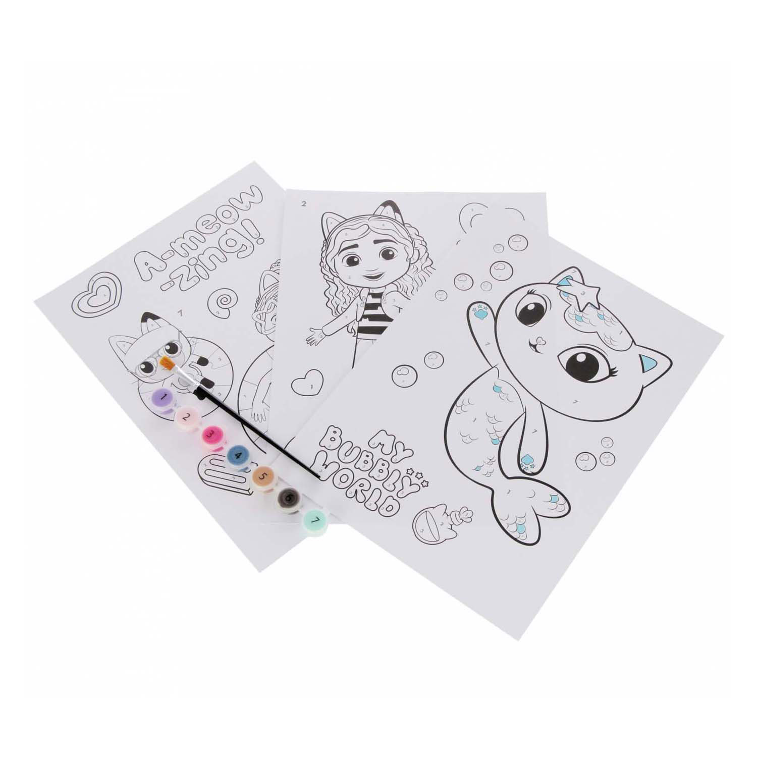 Gabby's Poppenhuis - Schilderen op Nummer - incl. 7 Kleuren Verf en Penseel
