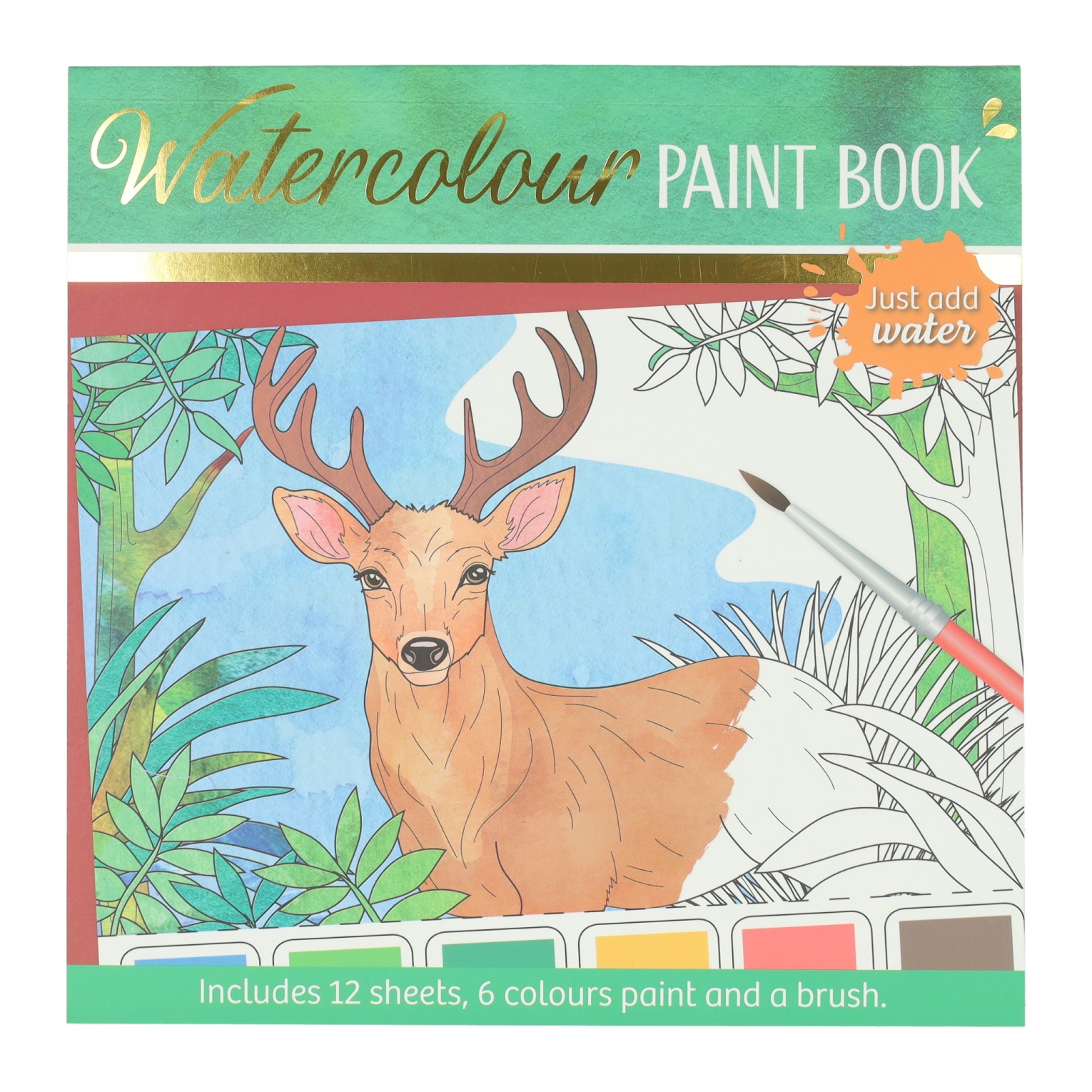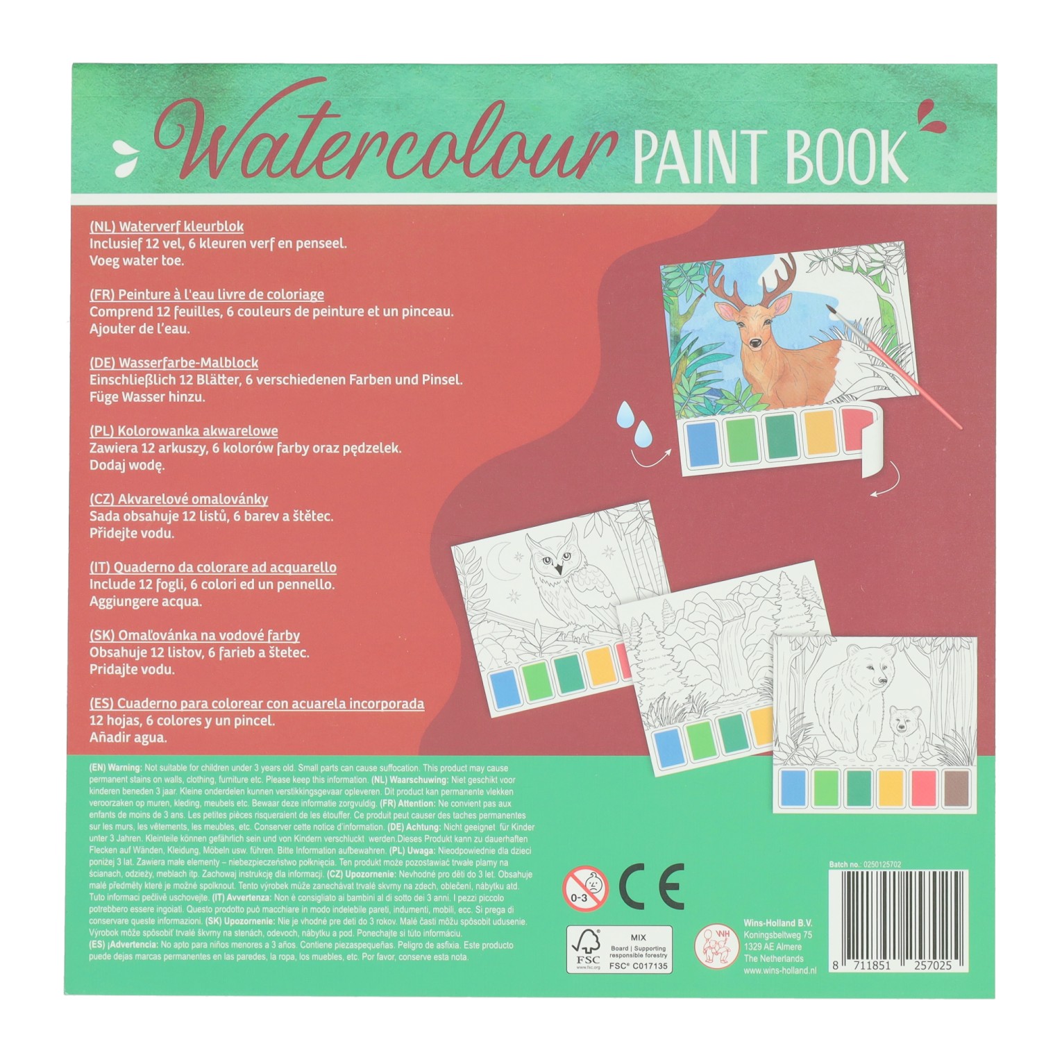 Waterverfkleurblok Volwassenen - Bosdieren - incl Penseel en 6 kleuren waterverf