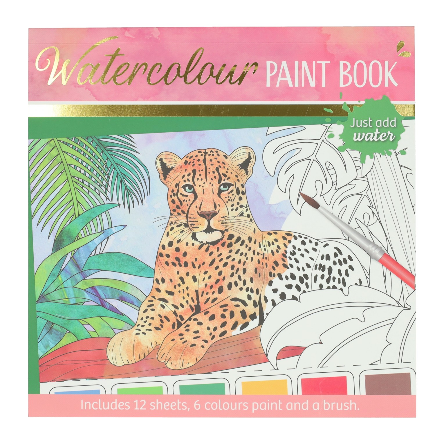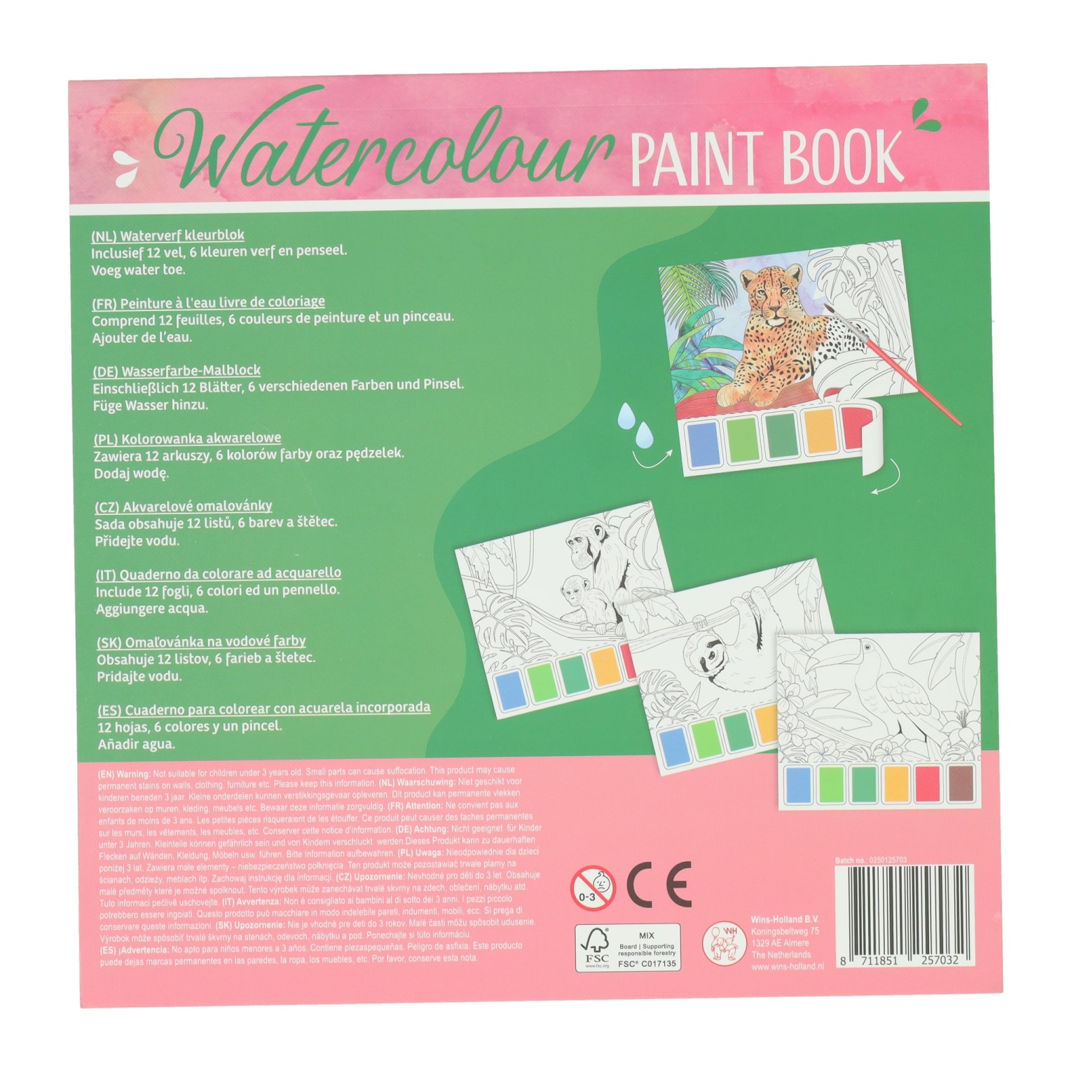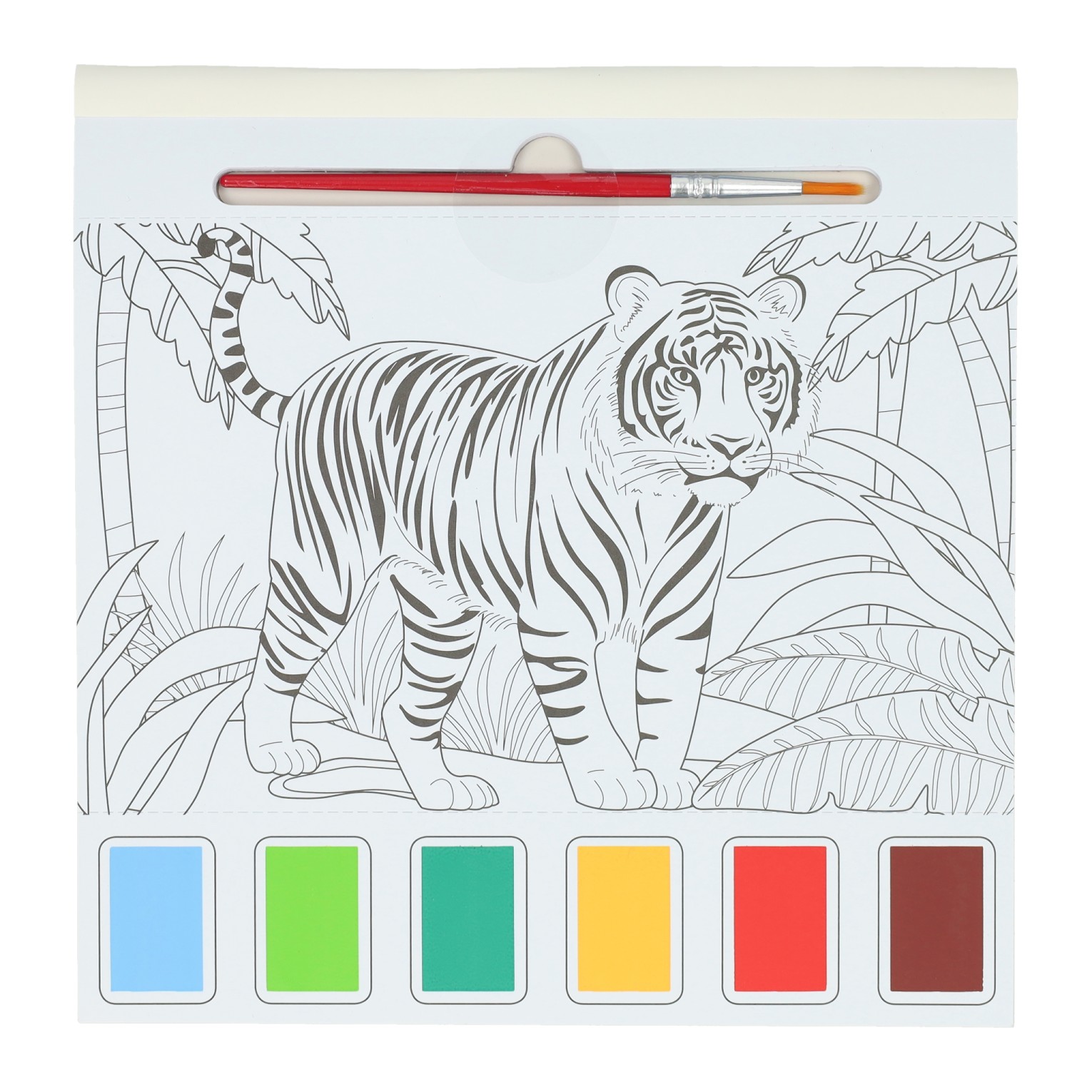 Waterverfkleurblok Volwassenen - Wilde Dieren - incl Penseel en 6 kleuren waterverf