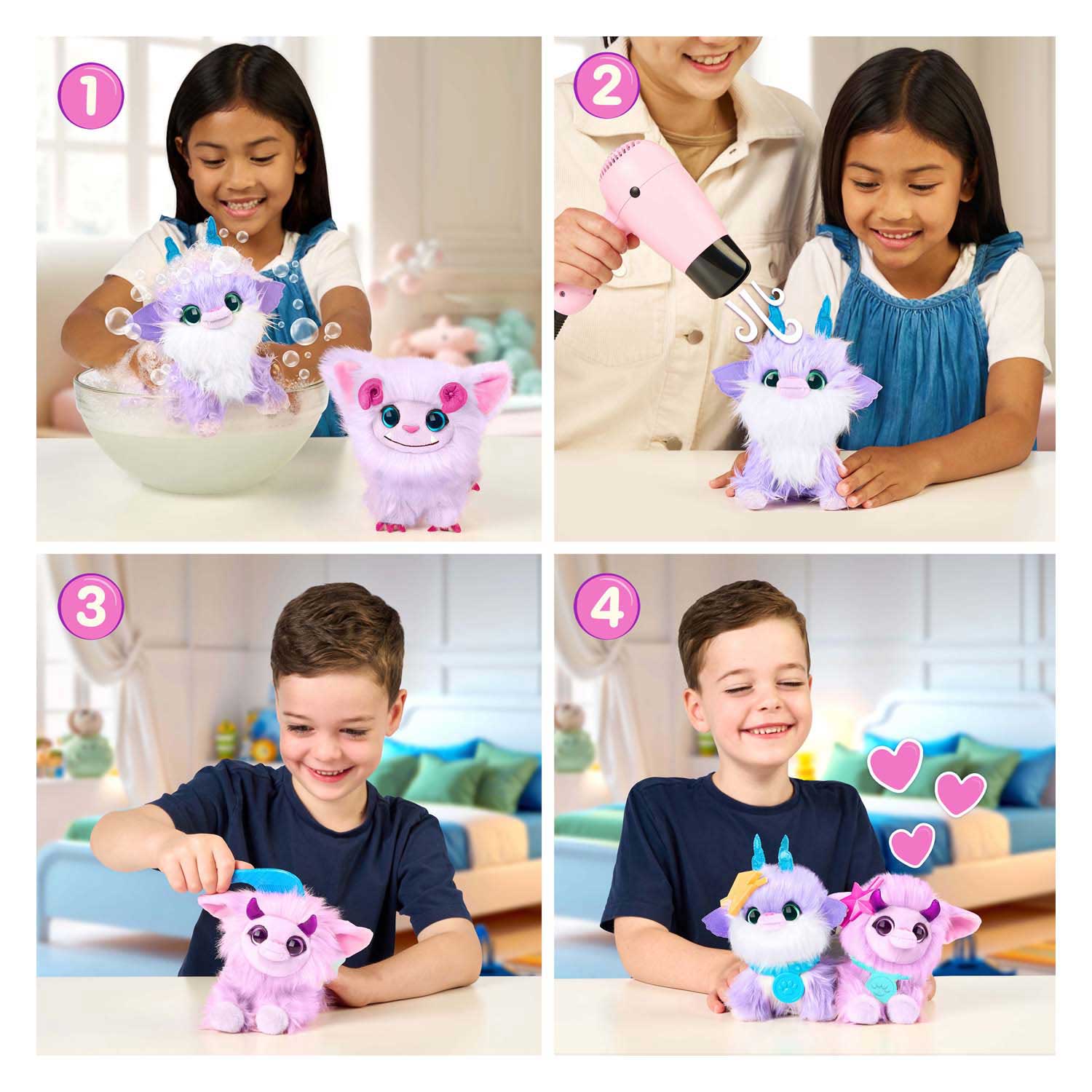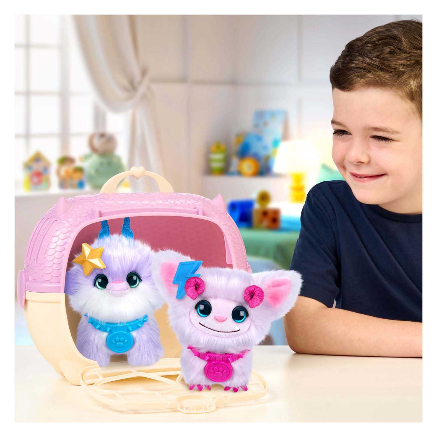 Wie ga jij redden? Ontdek je superzachte Scruff a Luvs Twin Fantasy mystery Knuffel! Het avontuur begint zodra je het geheimzinnige draagmandje met hartjes opent. Wat zit er verborgen? Alles wat je ziet is een grote, pluizige bal! Maar zodra je deze fluffy bal in warm water wast, komt het mysterieuze knuffeldiertje langzaam tevoorschijn. Het is een magische transformatie en je nieuwe huisdier is klaar om verzorgd te worden.