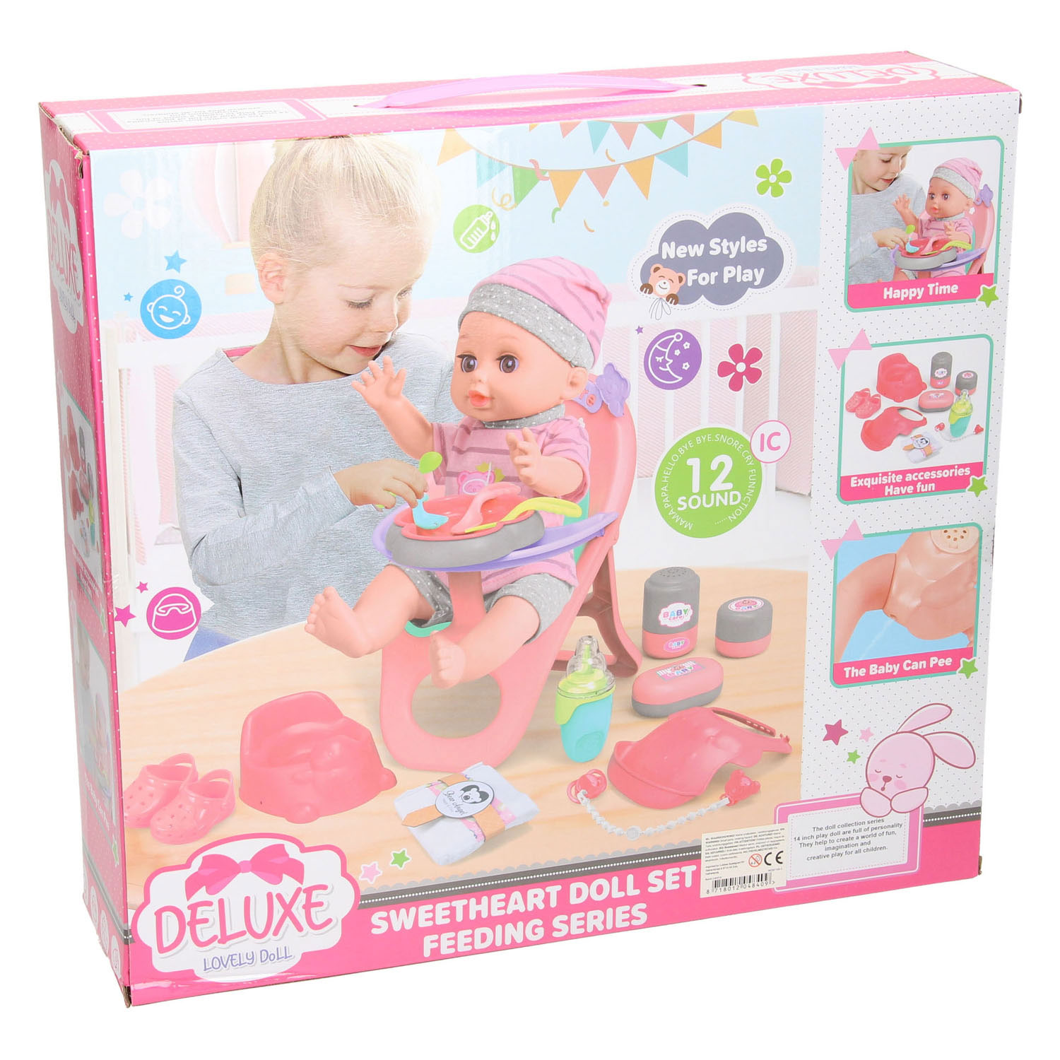 Deluxe Poppenset Etenstijd. Lengte pop: 29 centimeter.