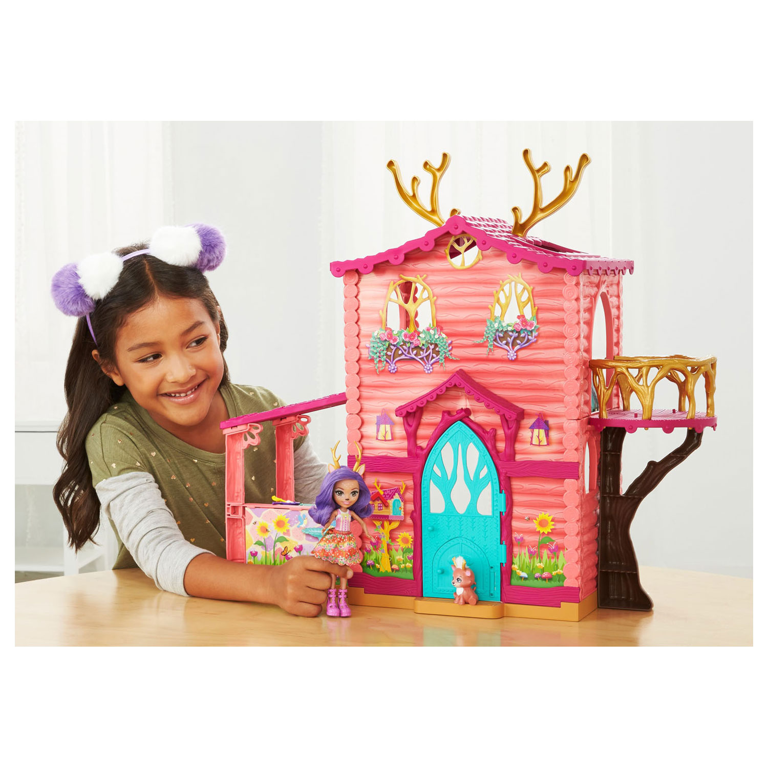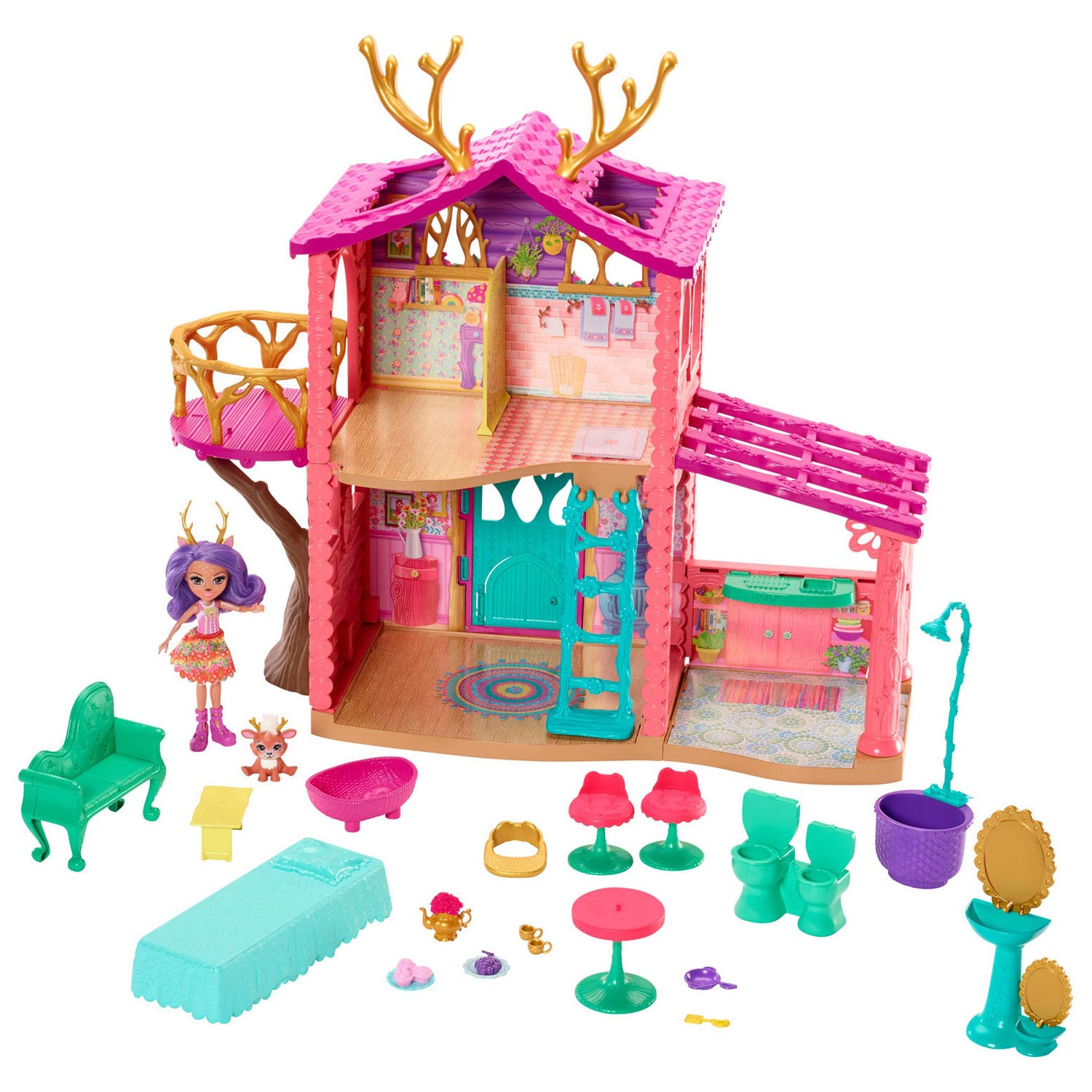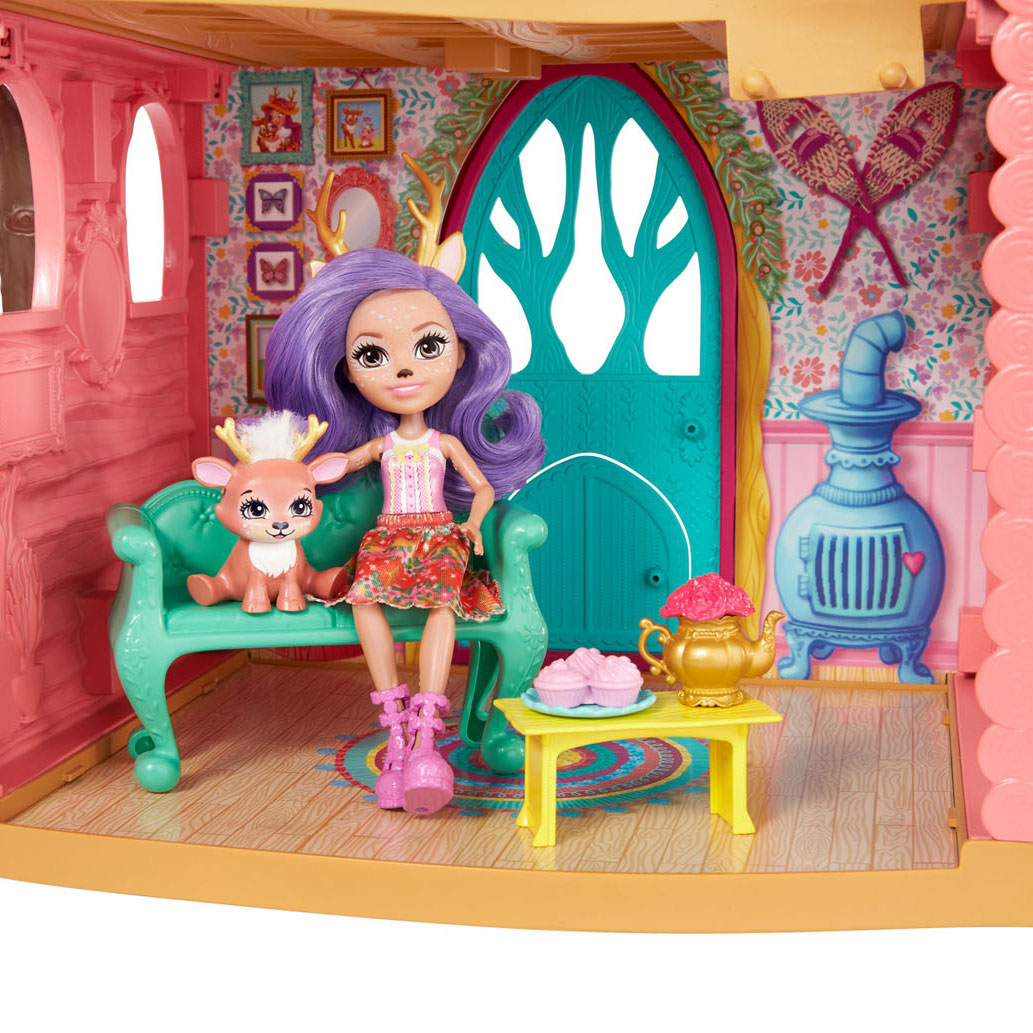 Ontmoet Danessa Hert en haar beste vriendje Sprint. Samen wonen ze in dit prachtige hertenhuis. In het hertenhuis is een woonkamer waar ze samen heerlijk kunnen kletsen, een keuken waar ze de lekkerste gerechten kunnen bereiden, een slaapkamer om uit te rusten, een badkamer om heerlijk te kunnen badderen en tot slot een gaaf balkon om heerlijk in het zonnetje te zitten. Kortom, het hertenhuis is een echt droomhuis. Het hertenhuis is prachtig afgewerkt en heeft veel details en accessoires. De Enchantimals poppen zien er leuk uit en zorgen voor uren speelplezier. Geschikt vanaf 4 jaar.