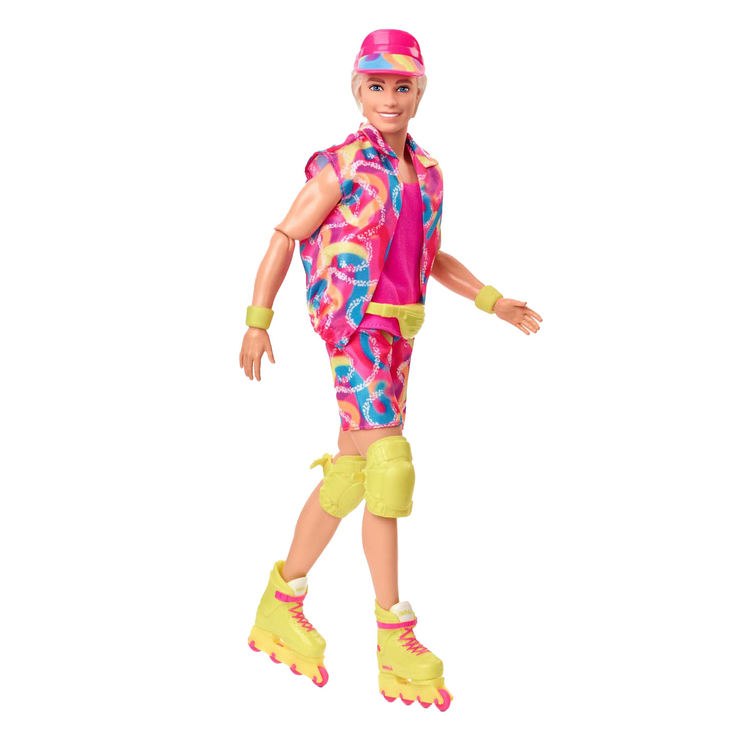 Groetjes uit Barbie Land! Deze Ken verzamelpop is een volbloed skater in zijn retro-outfit die precies lijkt op de outfit uit Barbie The Movie. Hij draagt een knalroze T-shirt en een kleurrijke bijpassende set, compleet met zonneklep, kniebeschermers en neon Impala inlineskates. Deze pop lijkt precies op het personage Ken uit de film en is een geweldig cadeau voor zowel fans als verzamelaars! Pop kan niet los staan. Kleuren en versieringen kunnen variëren.