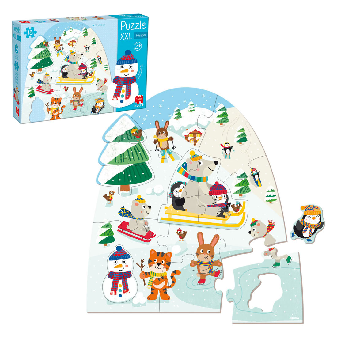 Deze XXL puzzel met winterthema bestaat uit 18 extra grote kartonnen stukken en is ontworpen om een leuke en leerzame speelervaring te bieden. De puzzel wordt geleverd met losse stukken in configuraties van 1, 2, 3 en 4 stukken, waardoor kinderen kunnen beginnen met eenvoudigere puzzels en geleidelijk aan complexere configuraties kunnen maken naarmate hun vaardigheden zich ontwikkelen. Deze stapsgewijze aanpak stimuleert een geleidelijke ontwikkeling en continue verbetering van het probleemoplossend vermogen.