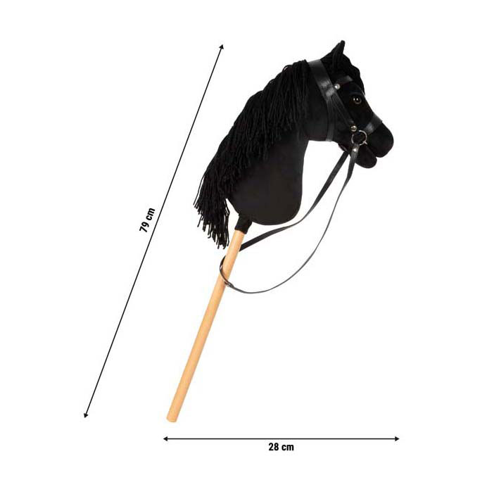 Een paard voor geweldige avonturen! Deze zwarte Hobby Horse is meer dan alleen een klassieke hobbypaard, het is de perfecte introductie tot de moderne wereld van het Hobby Horse-rijden. Hoewel hobbypaarden al eeuwenlang kinderen vermaken als traditioneel speelgoed, is de Hobby Horse tegenwoordig een actieve bewegingssport die wereldwijd wordt beoefend in wedstrijden, dressuur en springsport. Met een zachte paardenkop van stof, een weelderige manen die kan worden gestyled en een korte, stevige stok van massief hout voldoet dit stokpaard aan de eisen van modern rijdersspeelgoed voor kinderen. De accessoire set bestaande uit een halster, een leidsel en een hoofdstel met een verwisselbare frontriem, die kan worden vervangen door een gepersonaliseerde, biedt realistische speelmogelijkheden. Dankzij de open mond van het paard kan een hoofdstel met bit worden gebruikt, net als bij een echt paard. Reflecterende ogen met oogleden geven het paard een karaktervolle uitdrukking, voor intensief spelen met hart en verbeelding. En dit is bijzonder praktisch: dankzij de afneembare houten stok kan het speelpaard ruimtebesparend worden opgeborgen of meegenomen: perfect voor kleine ruiters die veel onderweg zijn.