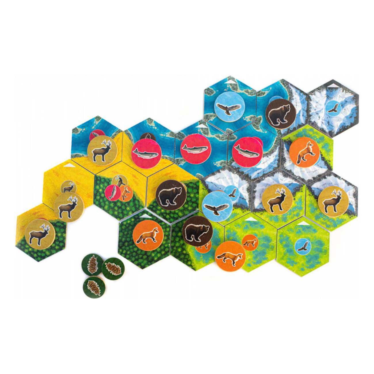 Cascadia is een bekroond, uitdagend familiespel waar je nooit genoeg van krijgt. Voor degene die graag ronddwaalt in de natuur en een groot dierenhart heeft, maar eigenlijk voor alle liefhebbers van tegellegspellen. Cascadia bevat veel verschillende soorten natuur met in elk gebied verschillende soorten dieren. Het natuurreservaat grenst aan de ene kant aan de Rocky Mountains en aan de andere kant aan de Stille Oceaan. Ben jij klaar om Cascadia te verkennen?