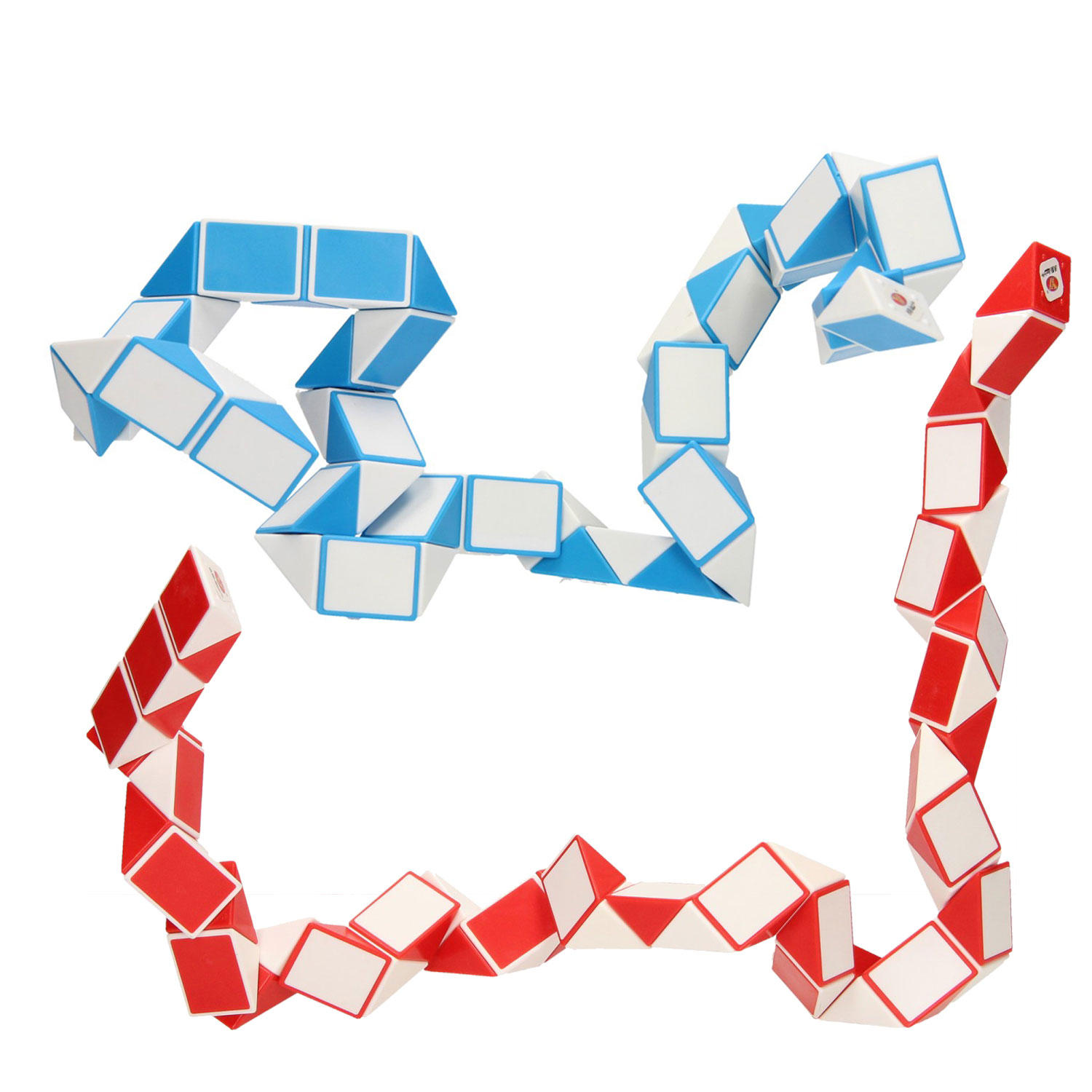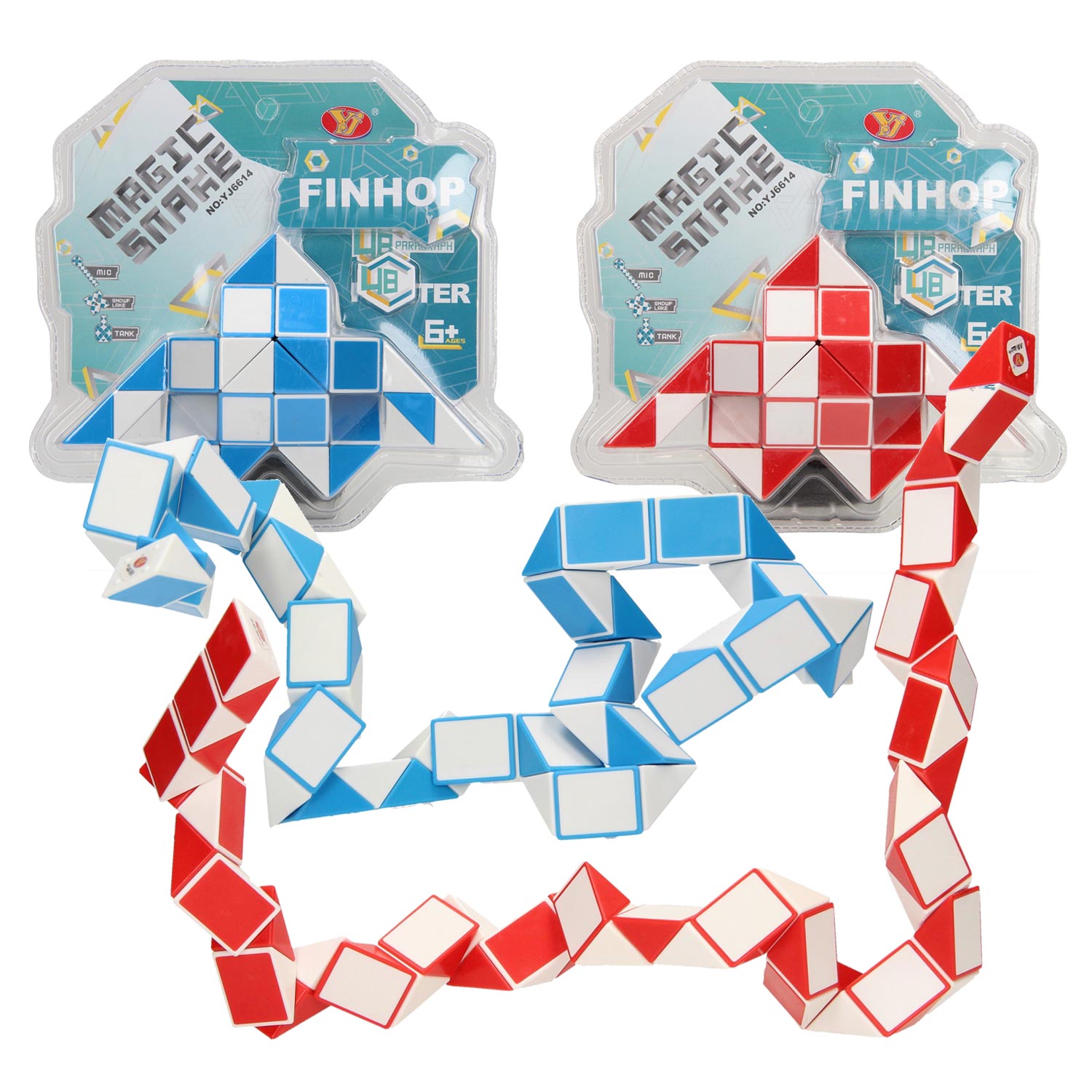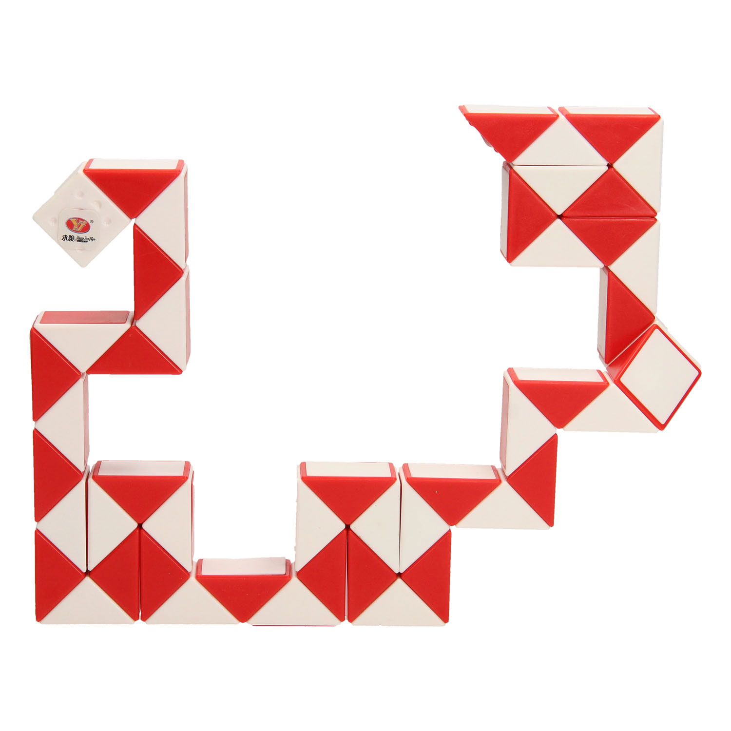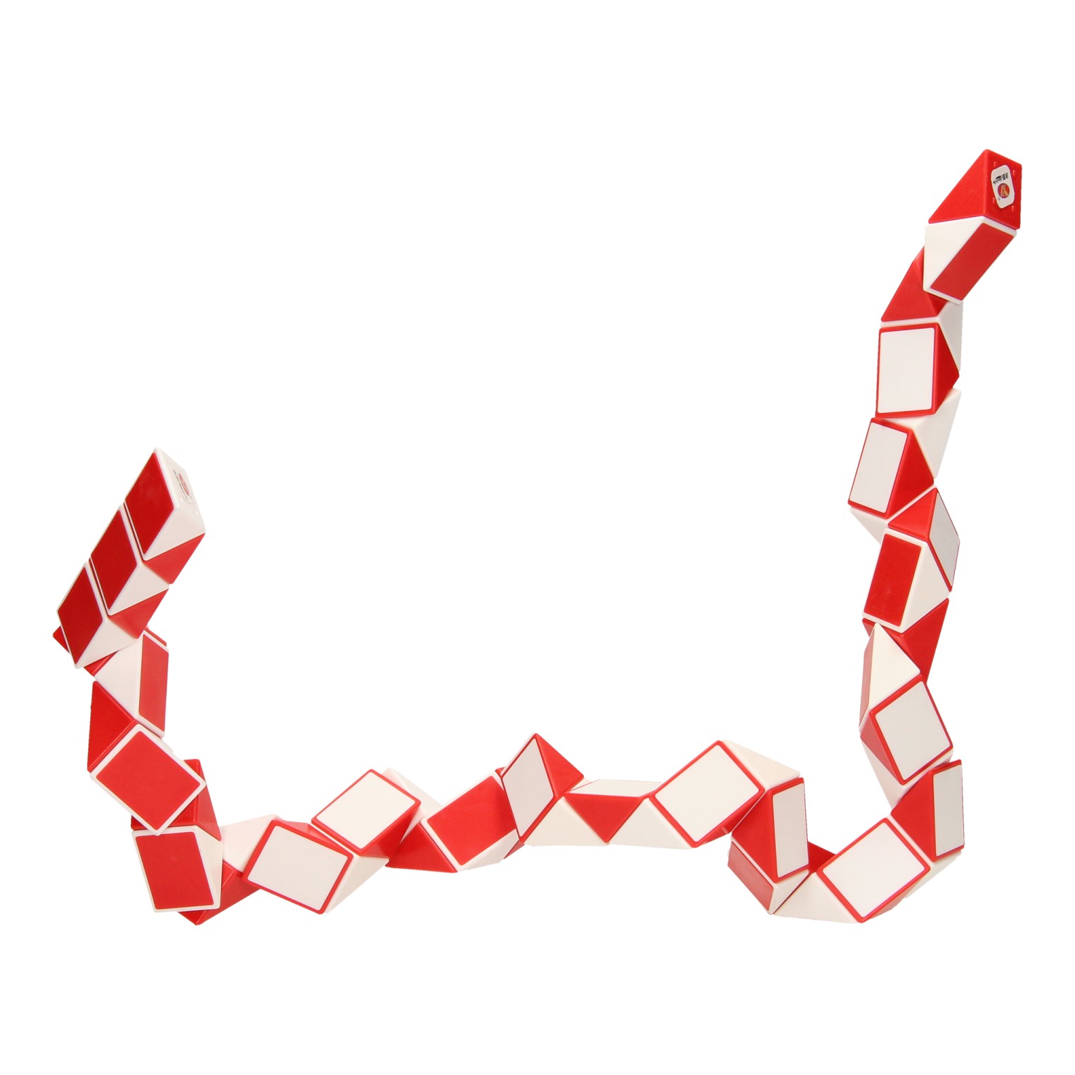 Magische Slang XL. De Magische Slang XL puzzel bestaat uit 48 driehoekjes en is verkrijgbaar in twee kleuren (rood-wit of blauw-wit).