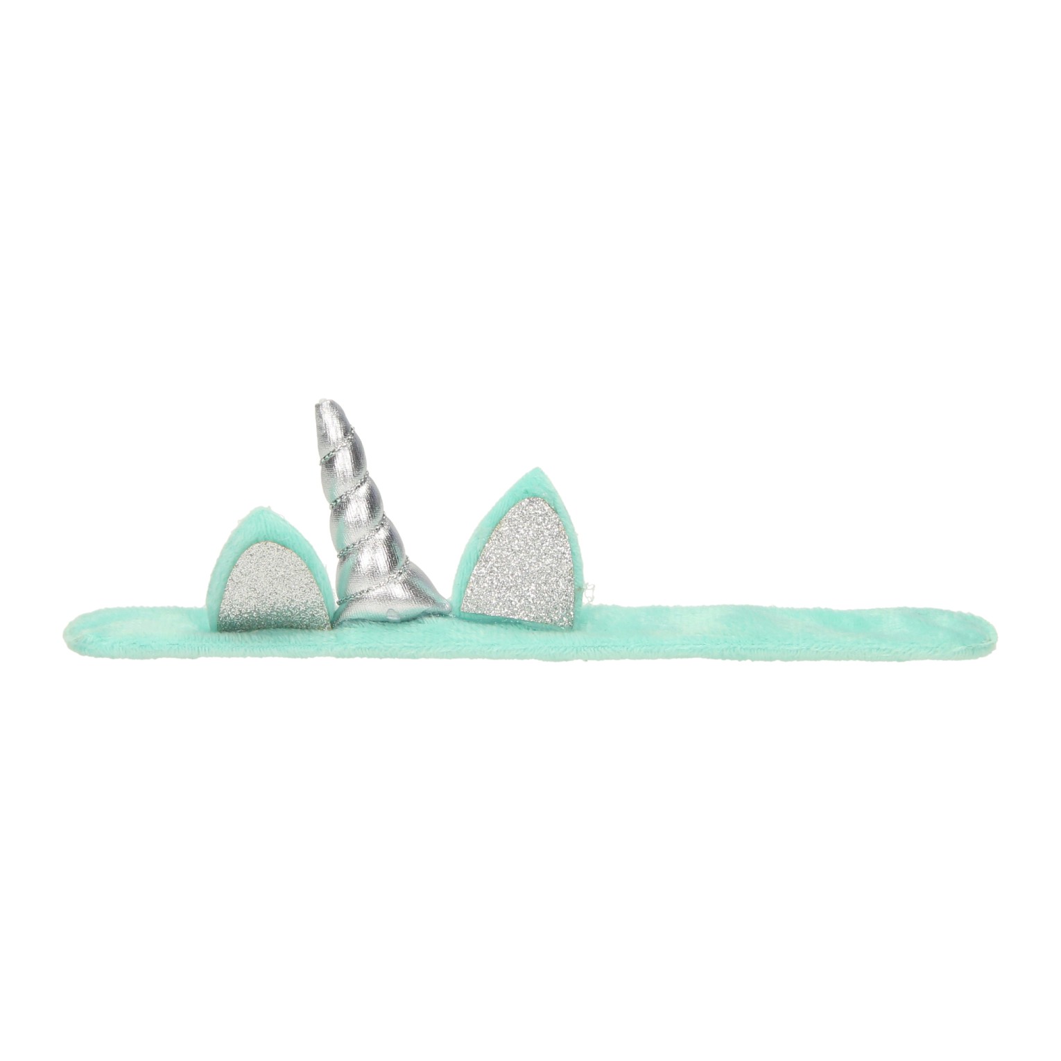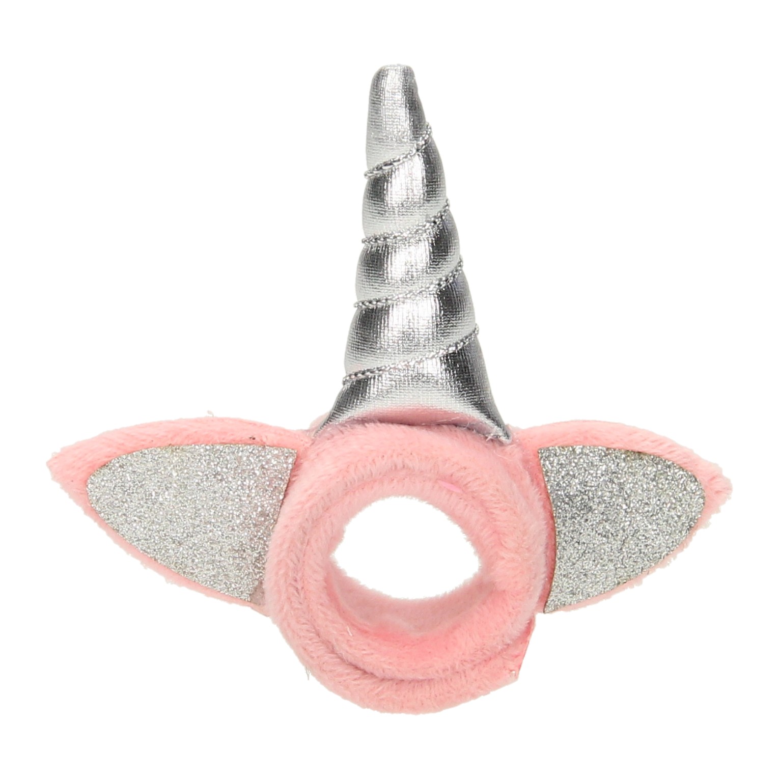 Zachte, pluchen klaparmband die om de arm krult als hij er tegenaan wordt geslagen. De armband is gemaakt van zachte stof en heeft een leuke eenhoorn-hoorn en glitteroortjes. Geschikt voor kinderen vanaf 3 jaar oud.