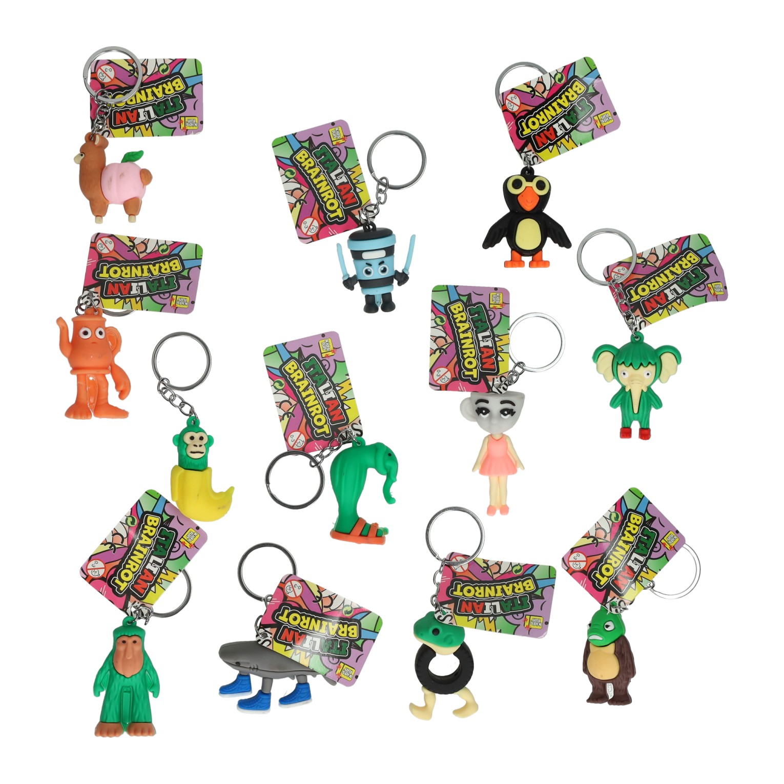 De Brainrot 3D sleutelhanger is een trendy accessoire geïnspireerd op populaire TikTok en meme trends. Gemaakt van kunststof en circa 6 tot 7 cm groot, met een stevige sleutelring. Wordt willekeurig geleverd en is leuk om te verzamelen voor kinderen vanaf 3 jaar.