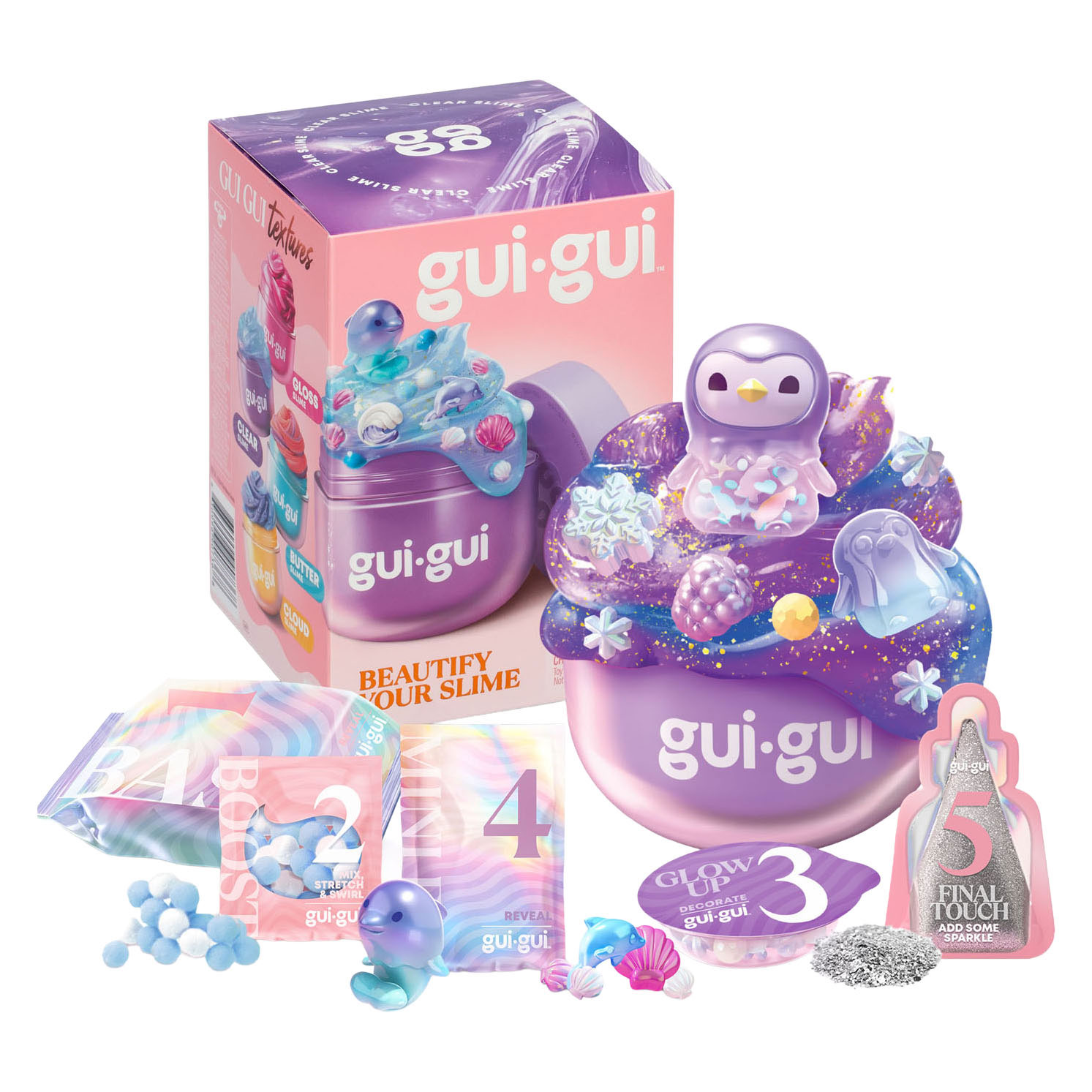 Met de Gui Gui slijmset (Bekend van TikTok) maak je zelf geurende en zachte slijmcreaties. Voeg stap voor stap booster, bedels en glitter toe voor een persoonlijk resultaat. De verschillende texturen zorgen voor afwisseling tijdens het spelen. Elke set is een verrassing, wat het extra leuk maakt. Een creatieve activiteit waar je lekker mee bezig blijft.