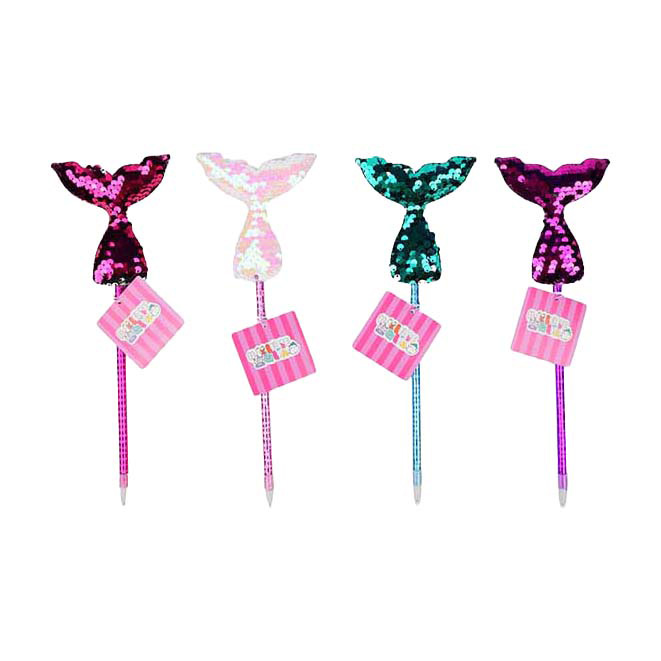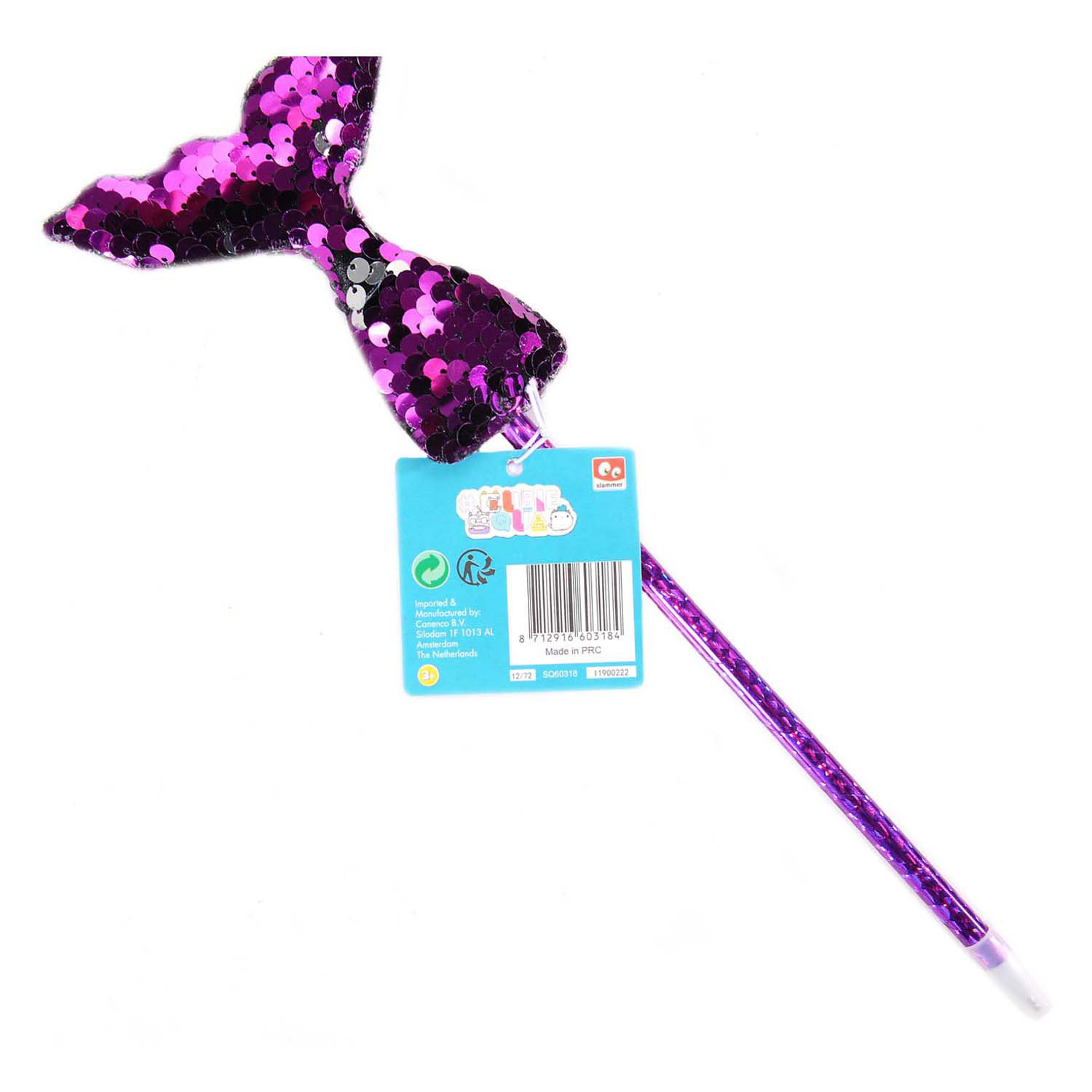 Zeemeermin pen met zeemeerminnenstaart en glanzende pailletten. Afmetingen: 1 cm x 9 cm x 27,5 cm. Geschikt vanaf 3 jaar.