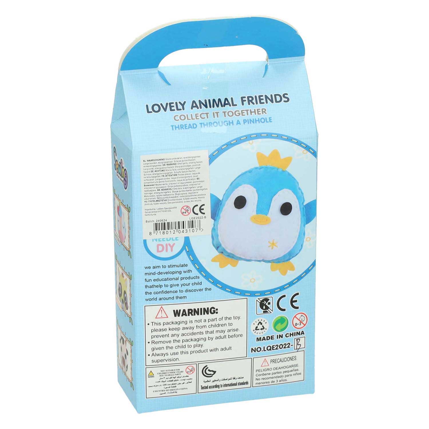 Handwerksetje voor het naaien van een schattige pinguïn met basis naaitechnieken. Inclusief handleiding met afbeeldingen, naald en draad. Geschikt vanaf 6 jaar.