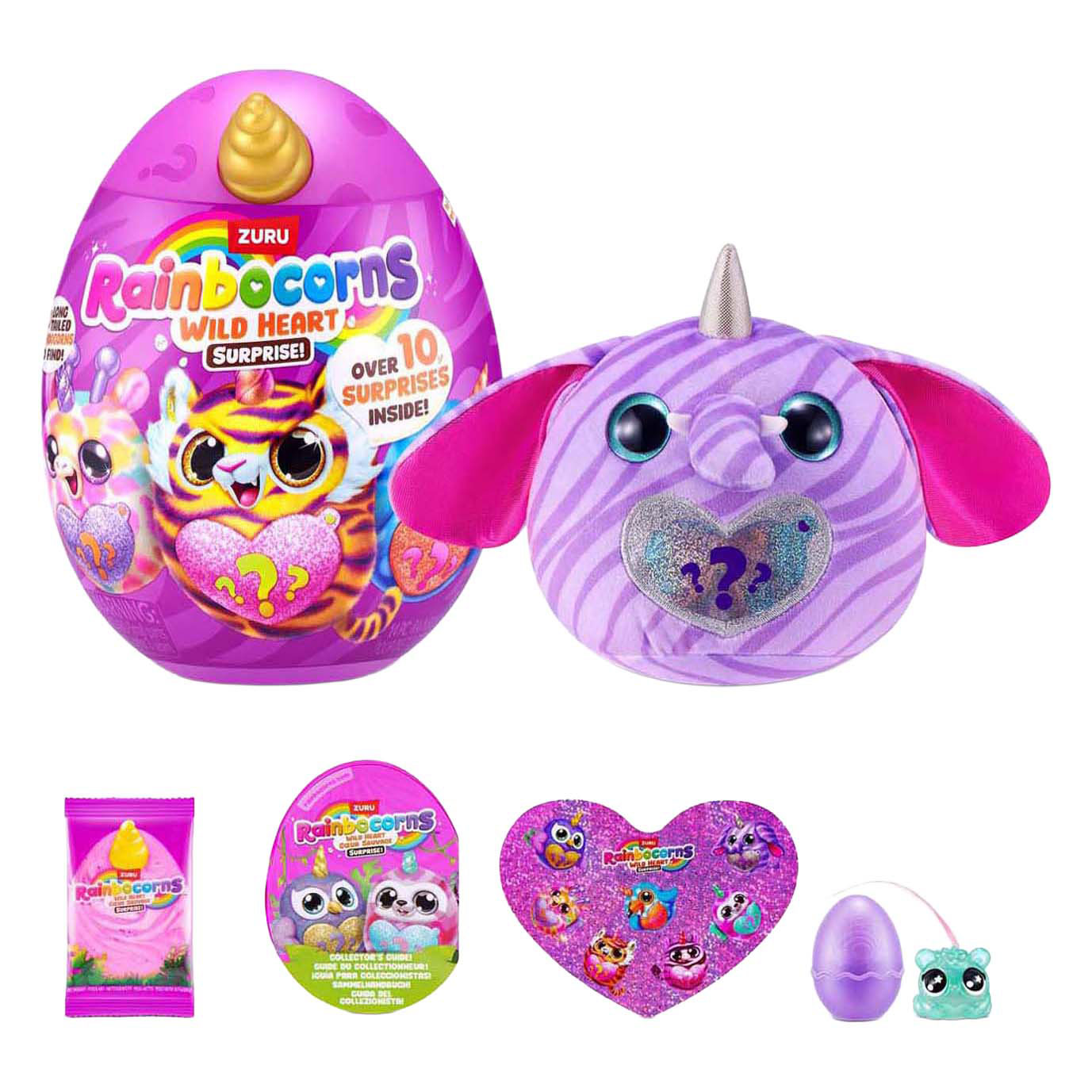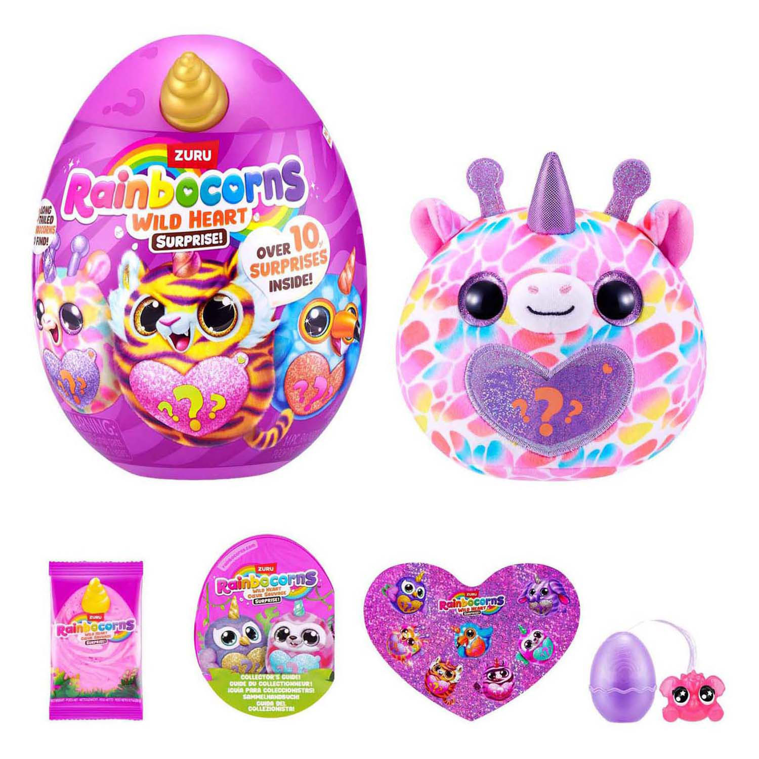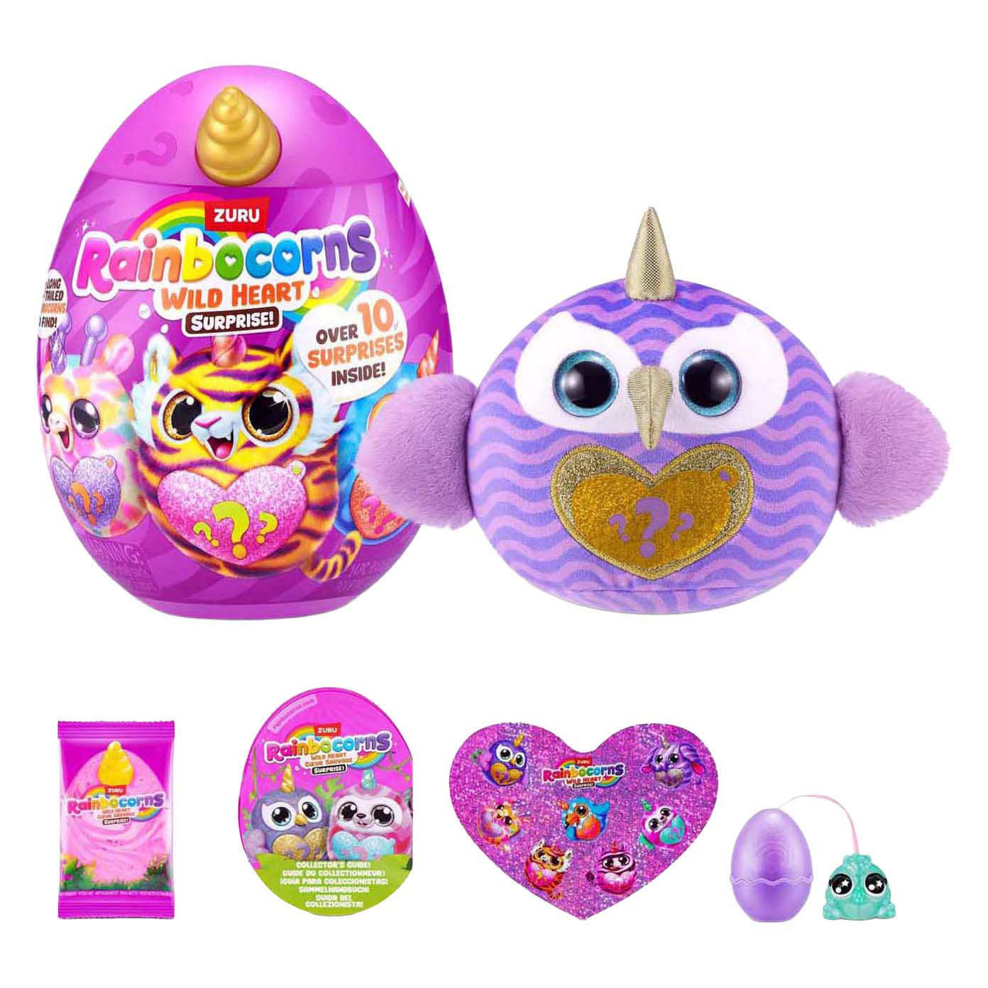 Het Rainbocorns Wild Heart Surprise-ei van ZURU bevat meer dan 10 verrassingen, zoals een zachte knuffel, Boo-Boocorn, stickers en slijm. Er zijn 7 verschillende pluche designs te verzamelen. Geschikt voor kinderen vanaf 3 jaar.