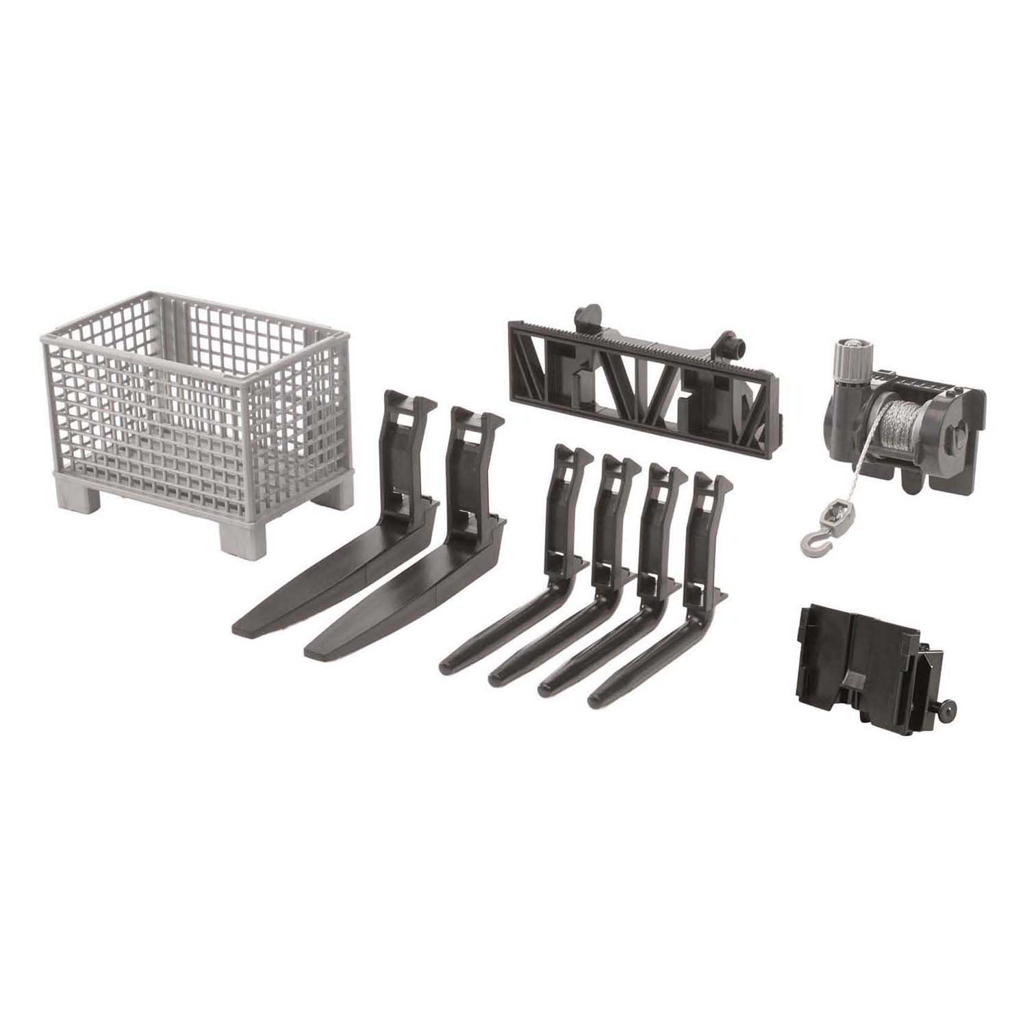 een kabellier en vier hooivorken plus twee palletvorken. Om het speelplezier nog groter te maken