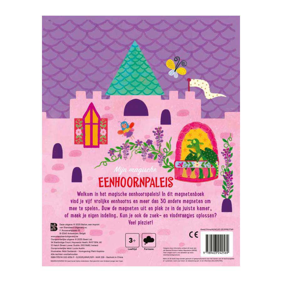 Welkom in het magische eenhoornpaleis! In dit magnetenboek vind je vijf vrolijke eenhoorns en meer dan 30 andere magneten om mee te spelen. Duw de magneten uit en plak ze in de juiste kamer, of maak je eigen indeling. Kun je ook de zoek- en vindvraagjes oplossen?