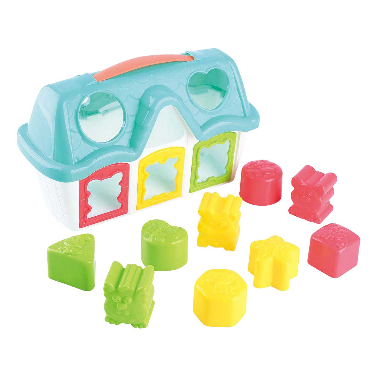 Kleurrijke vormenstoof in boerderijvorm met 9 blokjes en handige draaggreep. Gemaakt van kunststof. Stimuleert motoriek en vormherkenning. Geschikt vanaf 12 maanden.