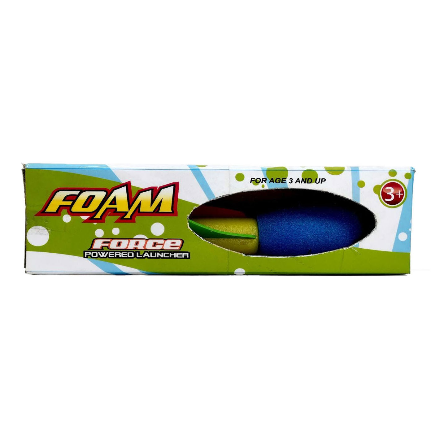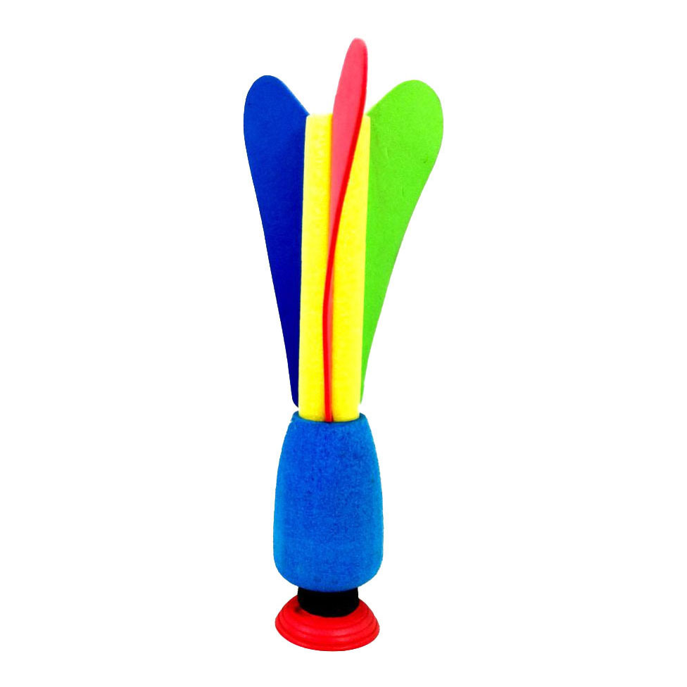 Werppijl gemaakt van foam, met een zuignap in plaats van een punt. Afmeting pijl: 23,5 bij 5 bij 5 centimeter.